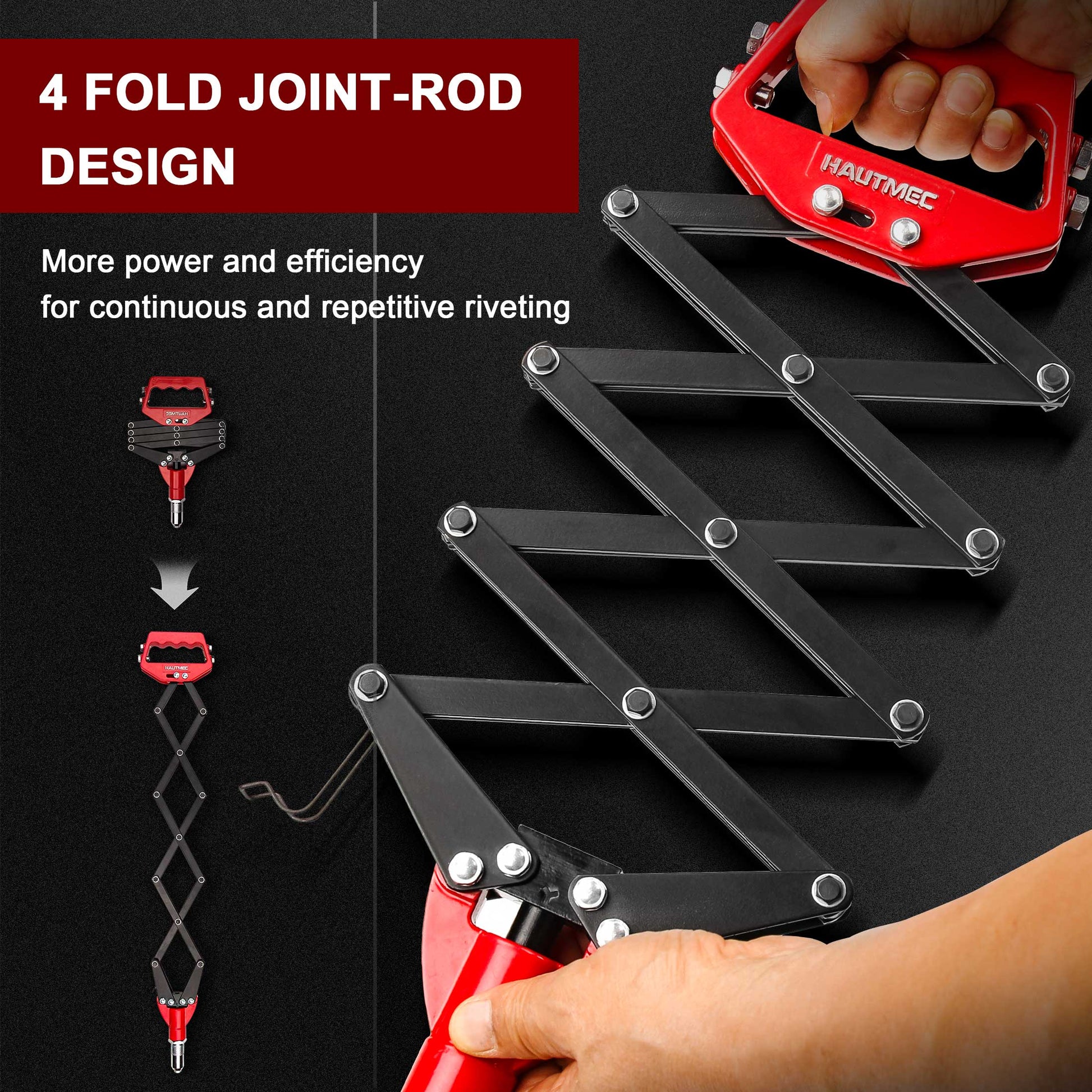 - Labor Saving Design:HAUTMEC powerful lazy tong pop rivet with 4 fold joint-rod designs is ideal for single pull action riveter,providing no loss in efficiency