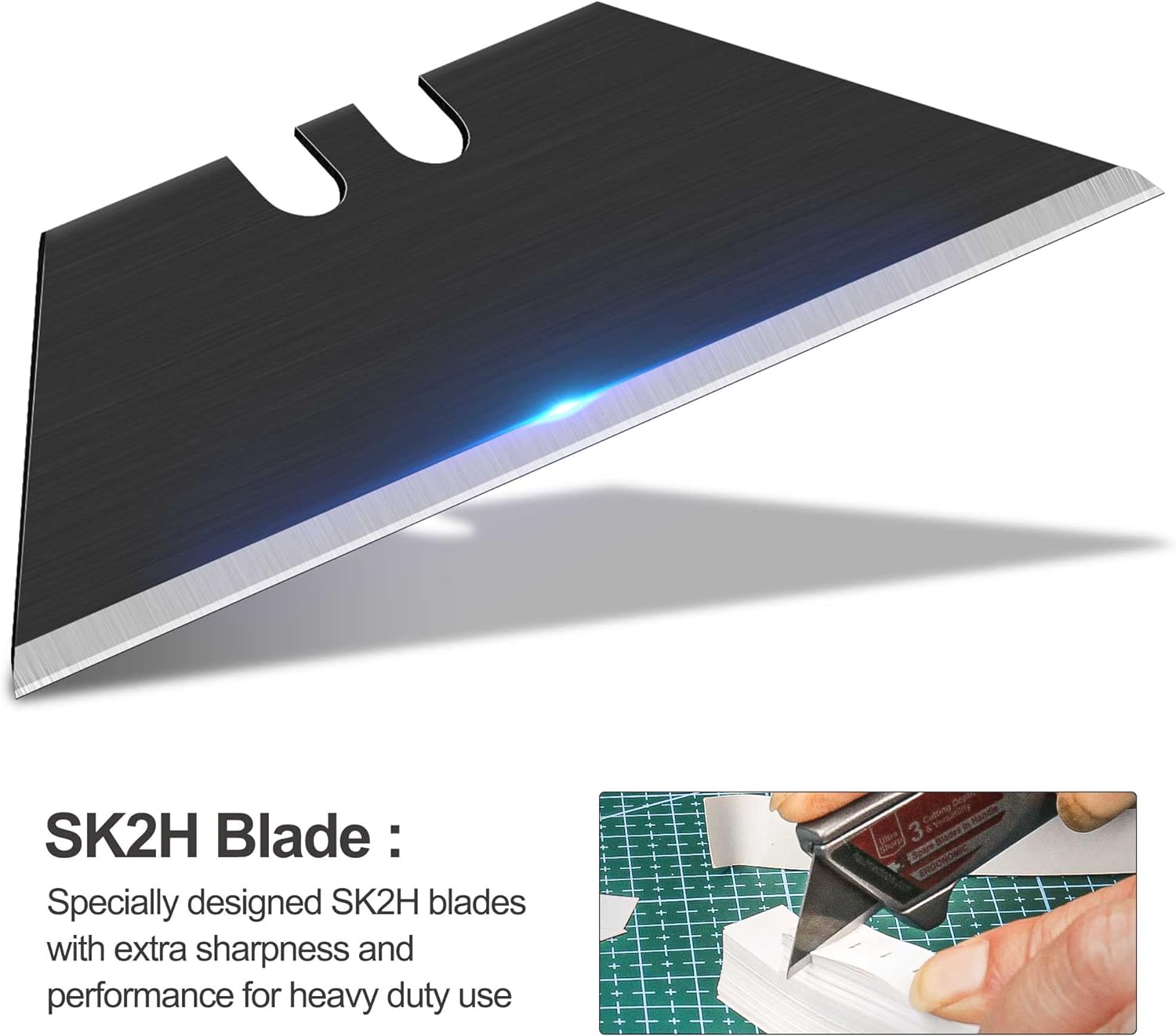 - SHARP AND DURABLE BLADES - Specially-designed SK2H blades (4 bladeds included) boast better material, sharpness and durability and deliver powerful cuts for most cutting materials. A perfect choice for various types of cutting materials like drywall, hobbies, DIY, building materials, rubber, cardboard, cartons, leather, carpets and more
