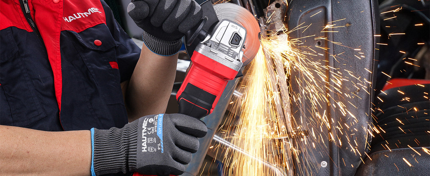 - The safety gloves for men feature 13-gauge HPPE knit outer shell for breathability and cut resistance , nitrile coating and dip for gripping efficiency and effectively resisting abrasion, cuts and punctures.
