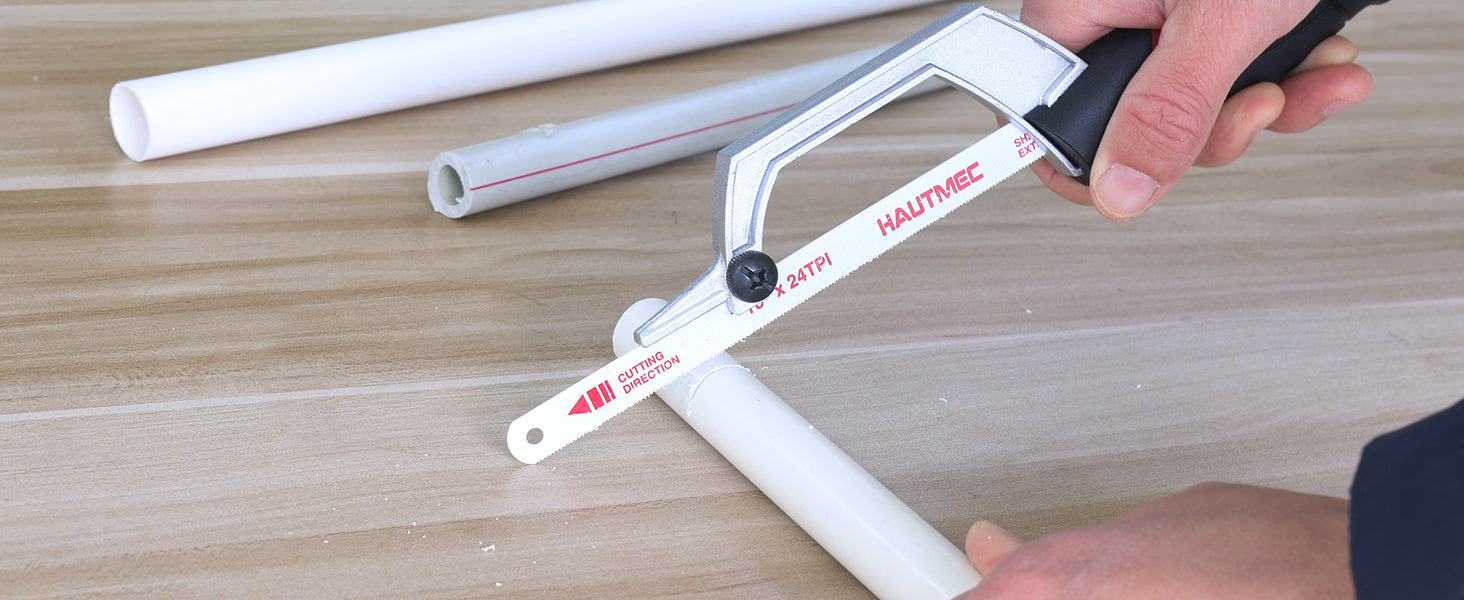 - 【Fits 10" & 12" Blades】Compatible with standard 10" and 12" hacksaw blades, includes 3pc 10” 24TPI bi-metal HSS blade for multi-purpose cutting