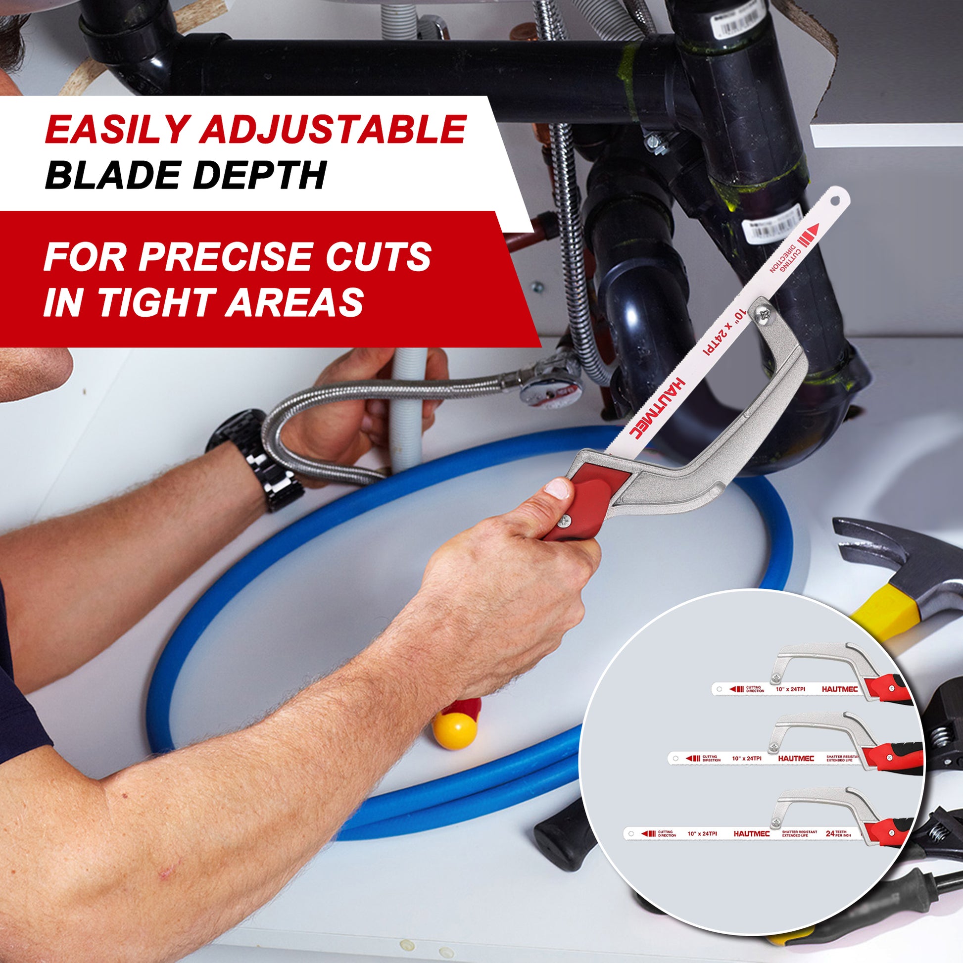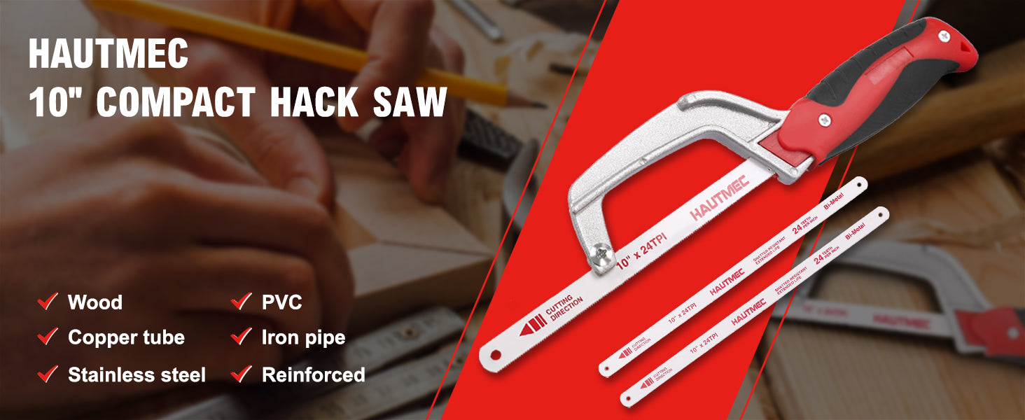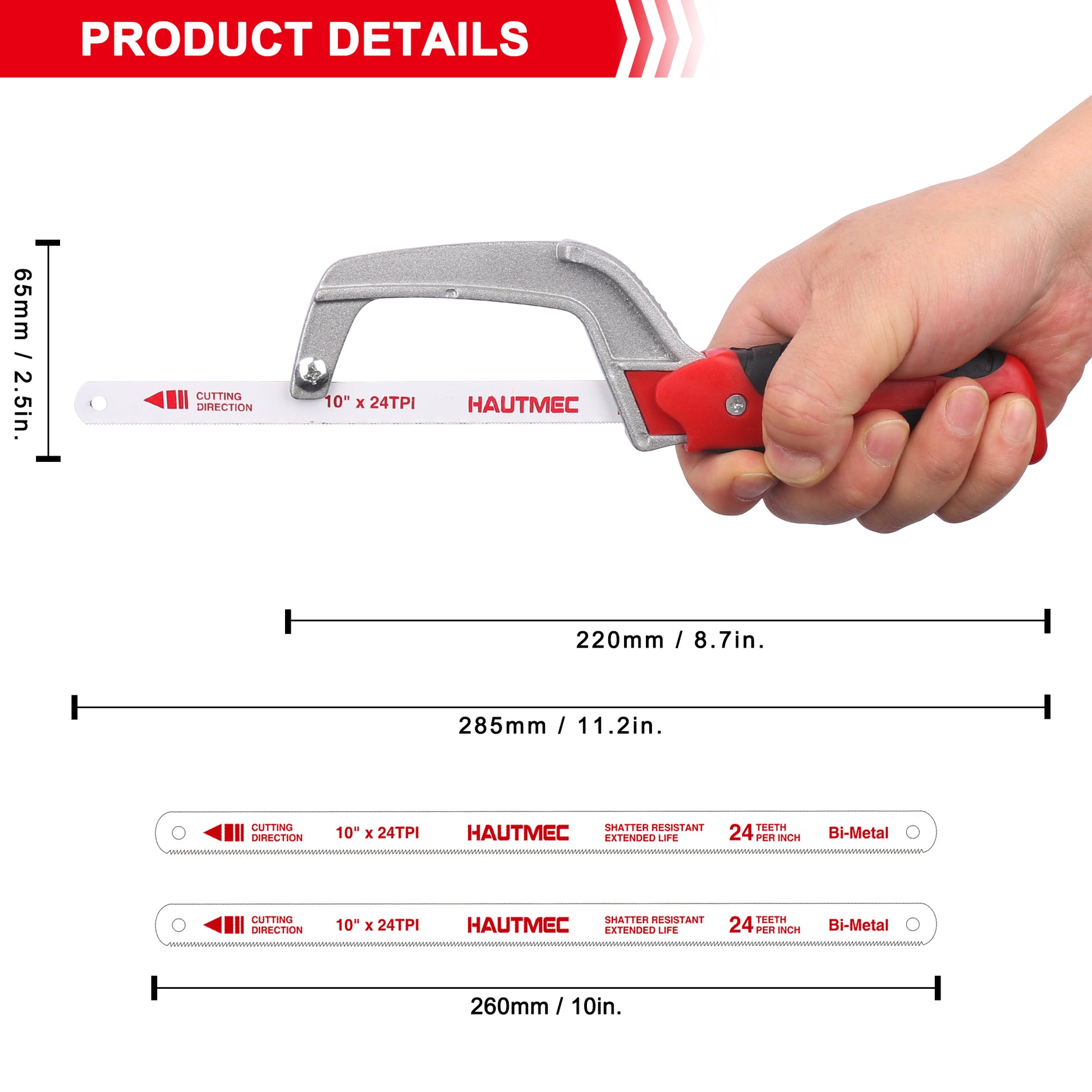 HAUTMEC Mini Hacksaw, Compact Hand Saw with 10" Bi-Metal HSS Blade, Lightweight Hack Saw for Metal Wood PVC, Especially Cuts In Tight Hard-Reach Spaces – HT0355