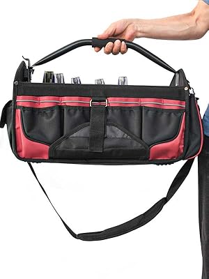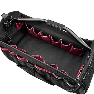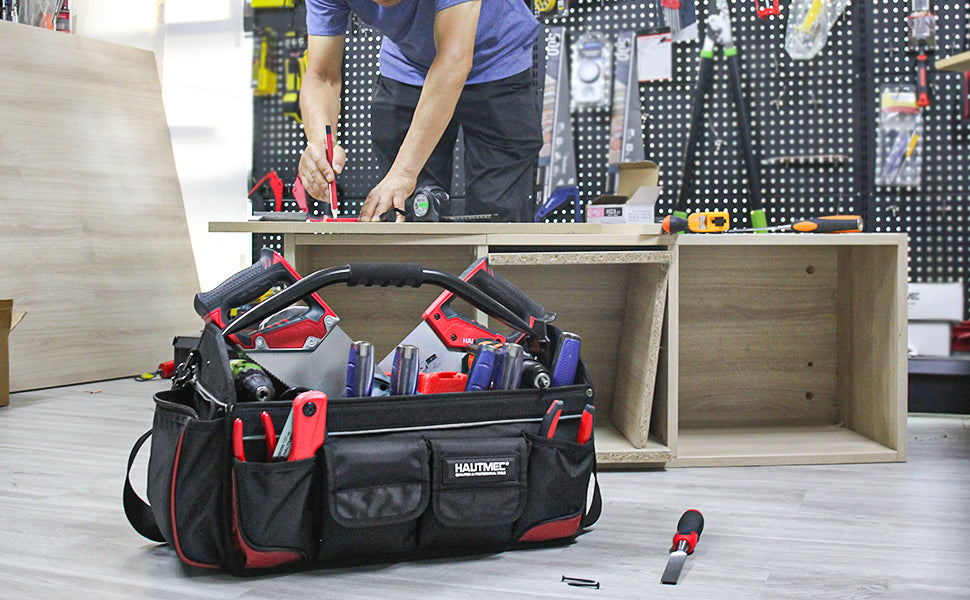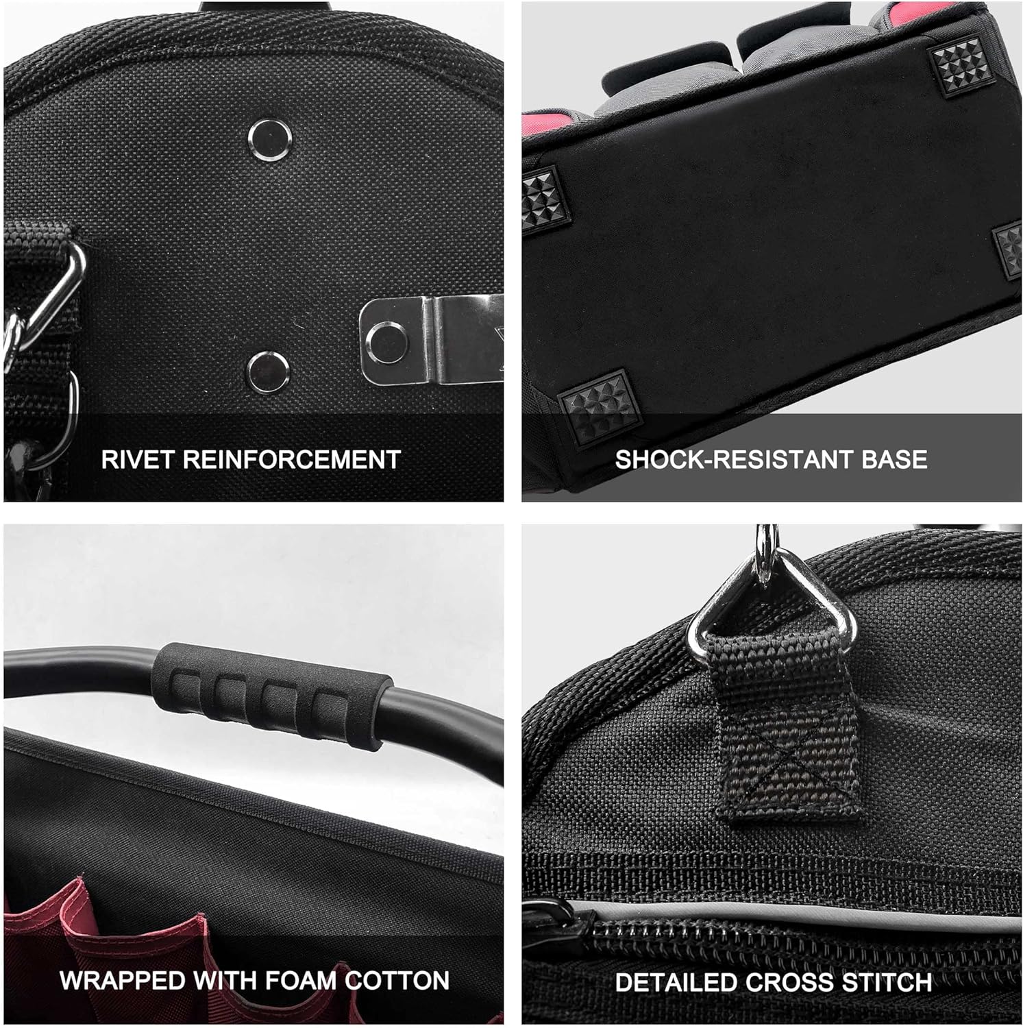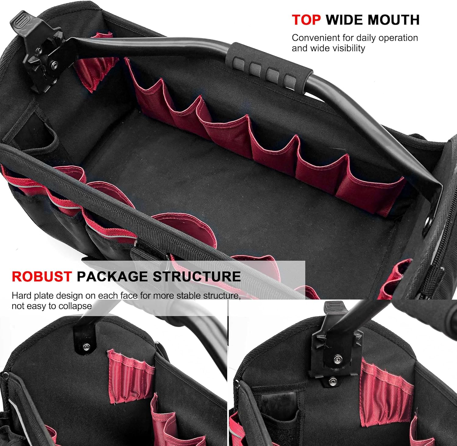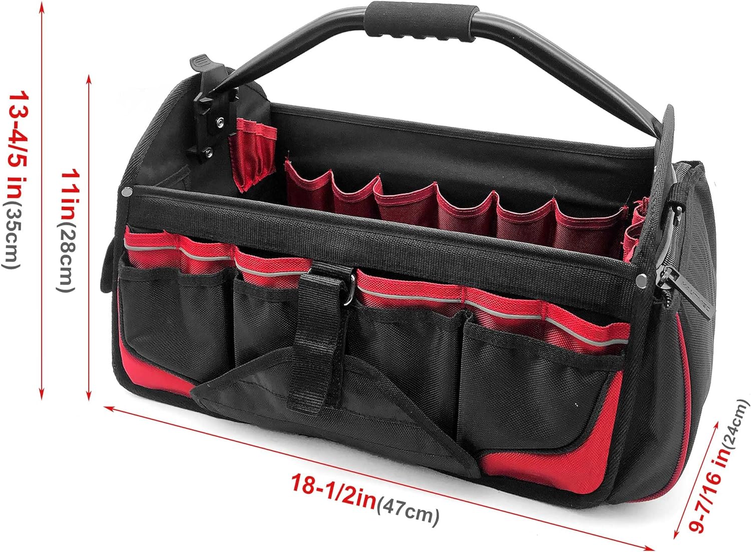 HAUTMEC 18.5 Inch Heavy-Duty Tool Bag, Open Top Tool Tote with 39 Pockets, Rotating Handle & Padded Shoulder Strap, Pro Electrician Tool Organizer Bag, Water-Resistant & Wear-Resistant – HT0178