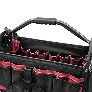 - 【Multi-pocket】39 storage pockets provide customized starage space for each tool: a special zip pocket, a tape measure holder, a pocket for the phone, a toggle compartment for cable storage etc