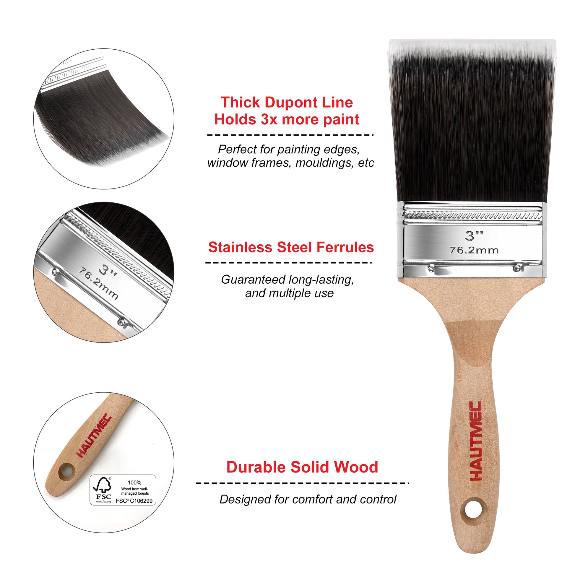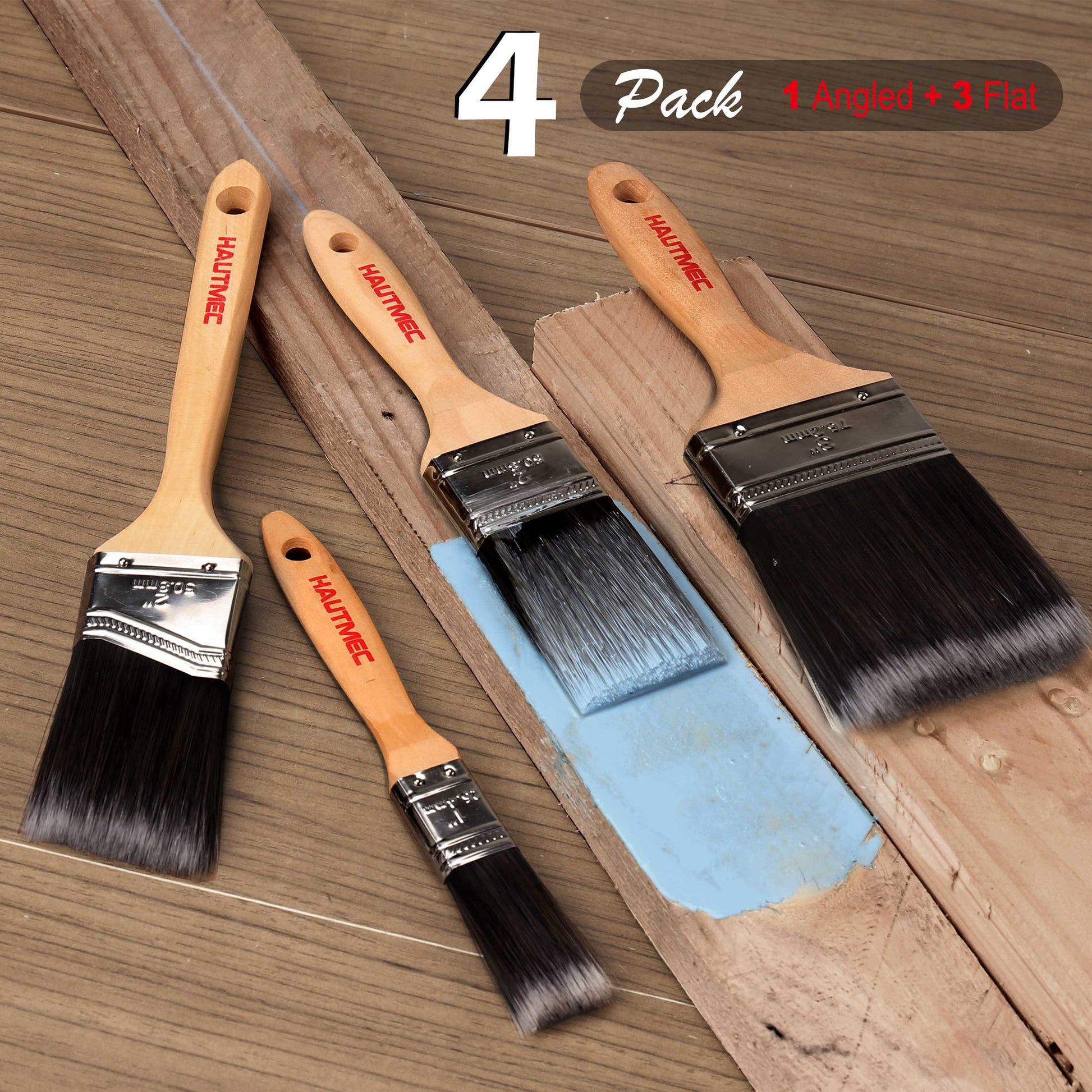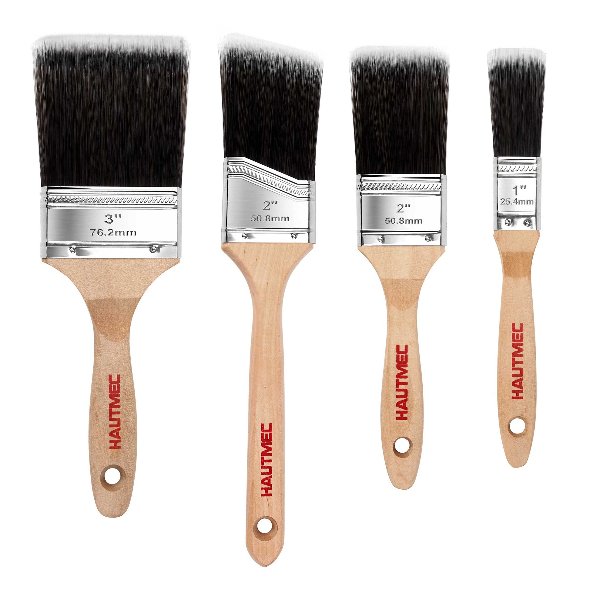 HAUTMEC Paint Brushes,4 Pk Treated Wood Handle Stain Paint Brush Set HT0029-PT