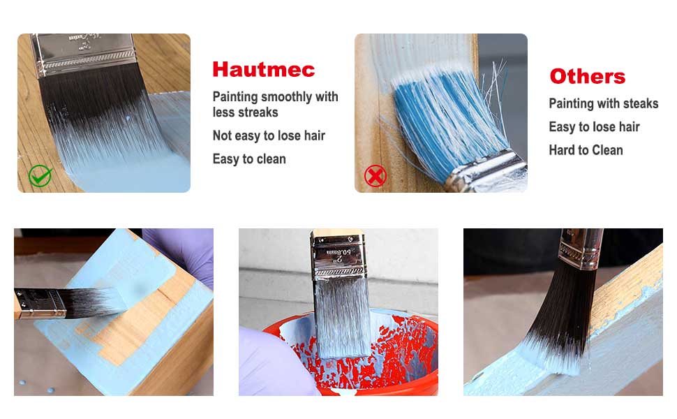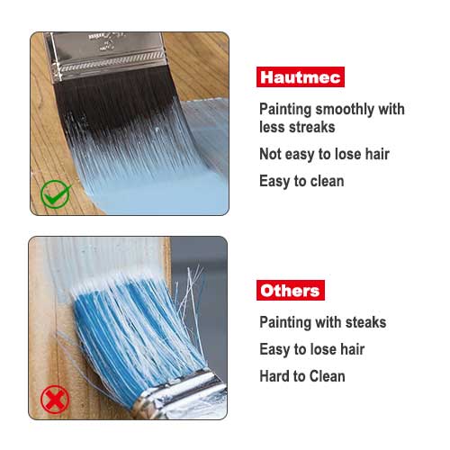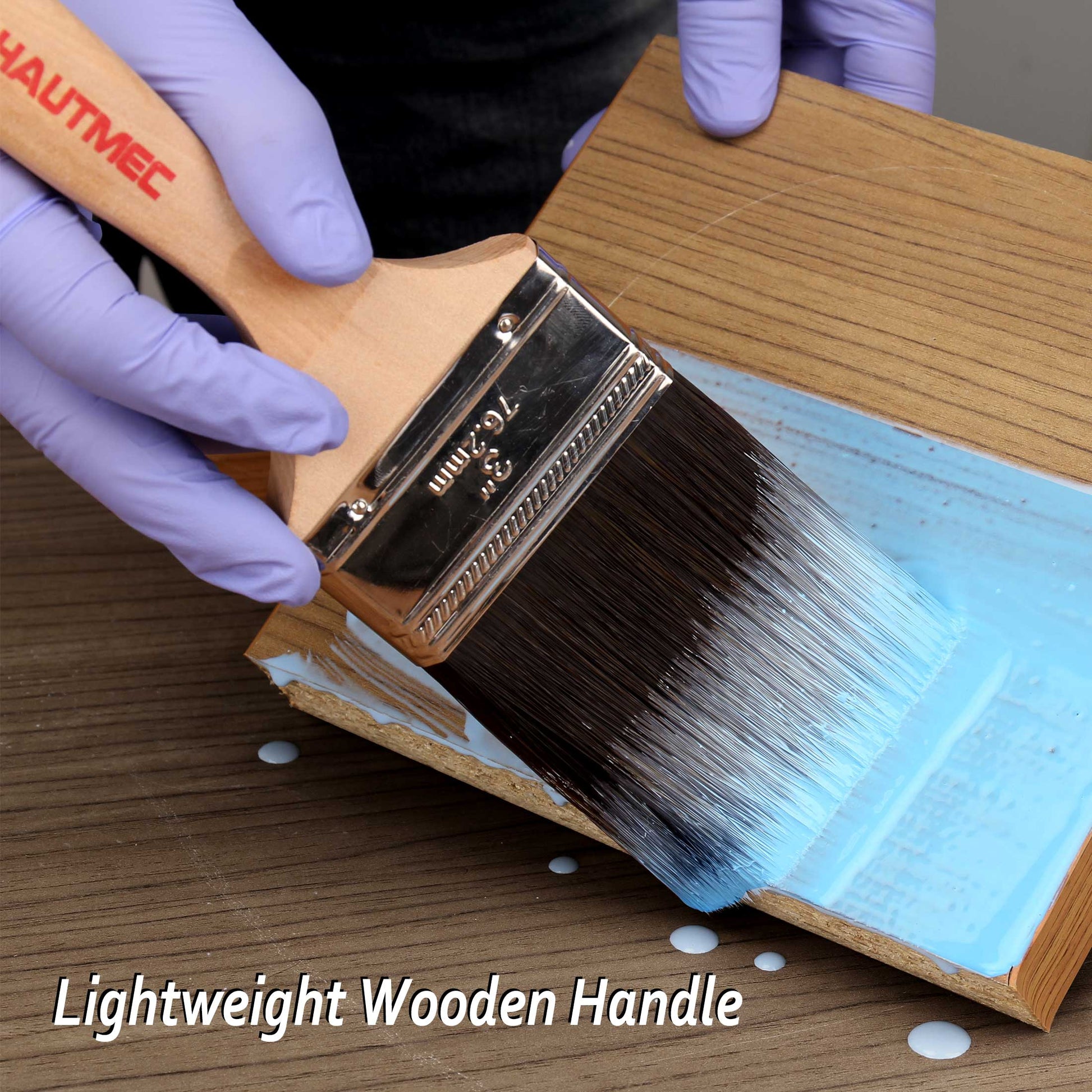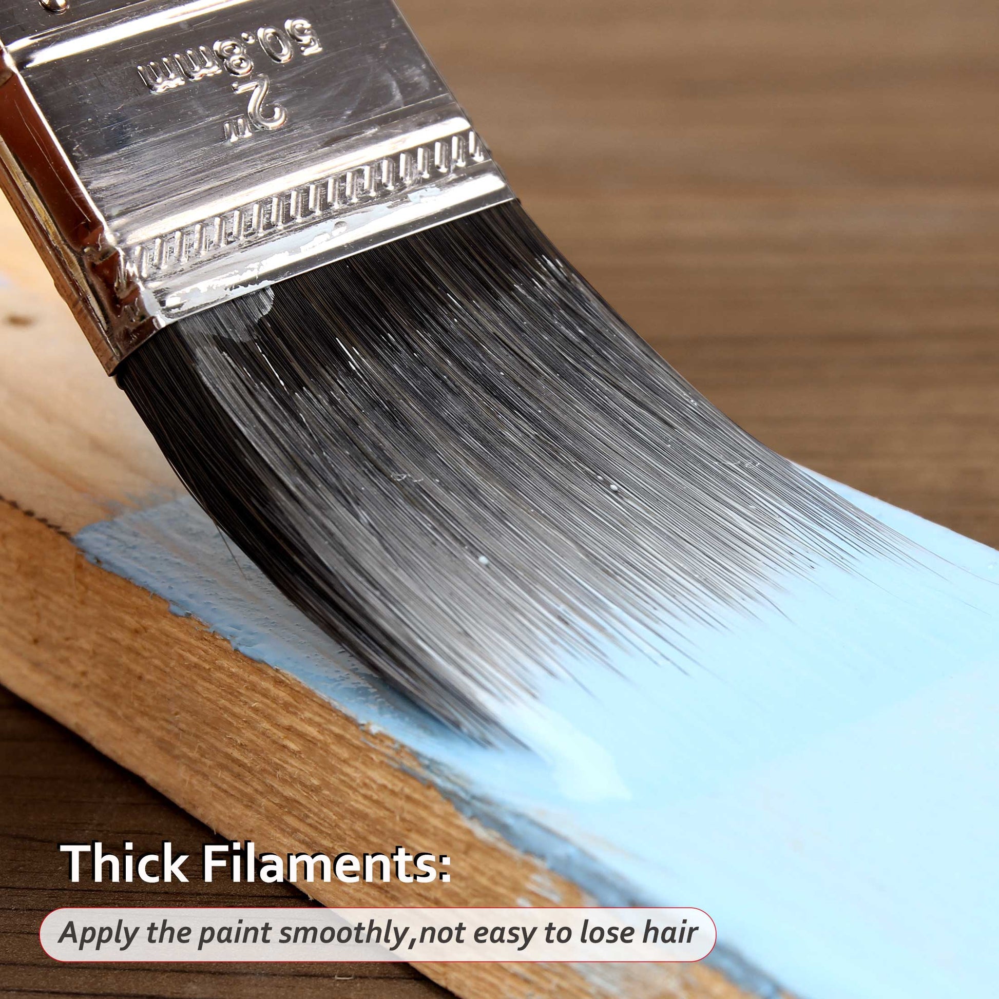 - Comfortable Grip-Comfortable lightweight wood handle that can last for long tedious jobs; Stainless steel cover make sure the filaments will not drop off.Paint for a long time without getting tired hands.