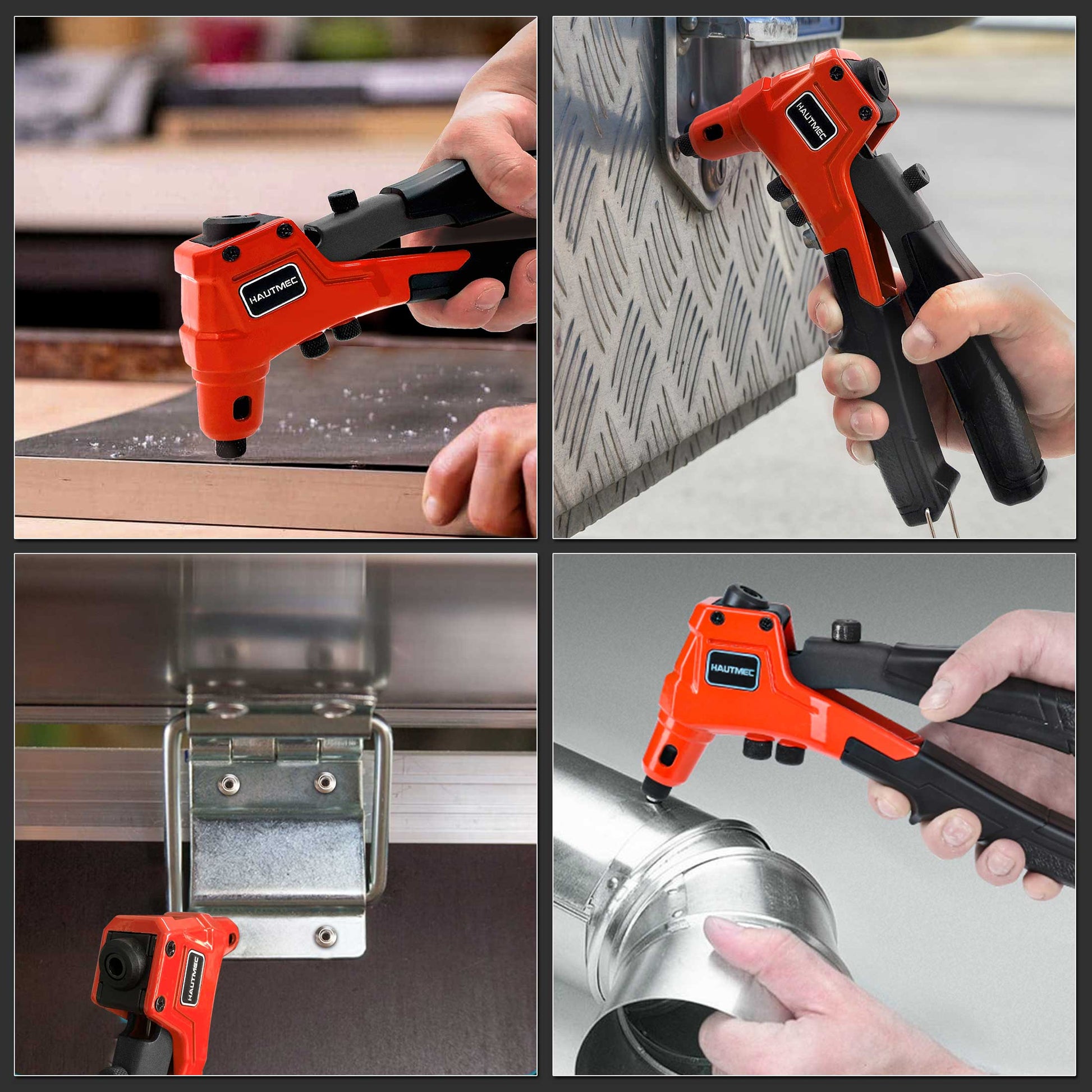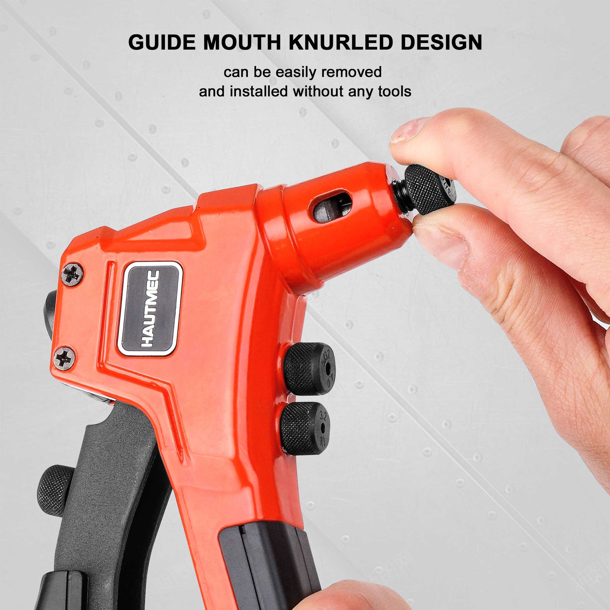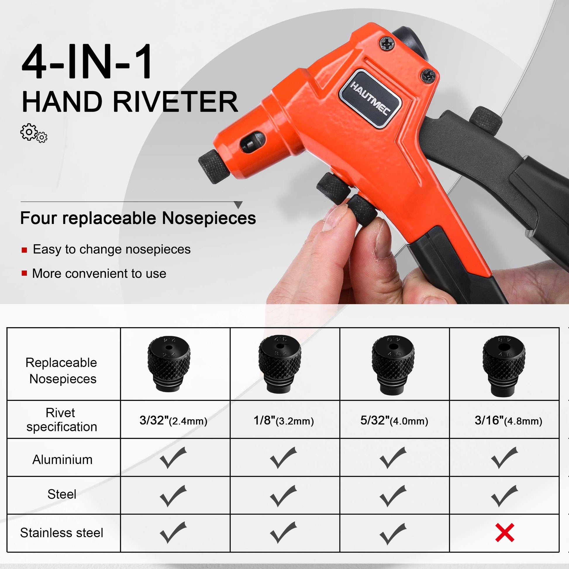 HAUTMEC Pop Rivet Gun,4 in 1 Hand Riveter with 4 Tool-Free Interchangeable Rivet Heads HT0087-HR