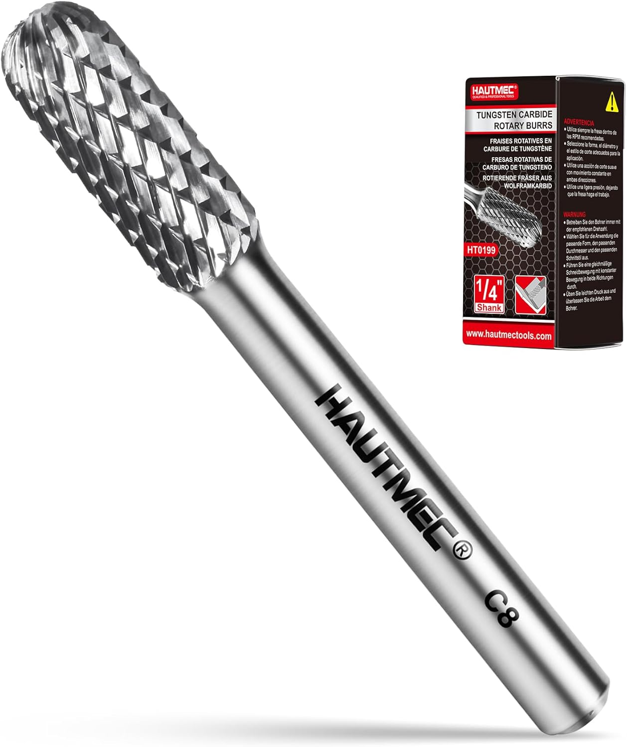 HAUTMEC Tungsten Carbide Rotary Burr Bit – 1/4" Shank, Double Cut Tungsten Rotary File for Die Grinder, Professional Grade, Suit for Metal Carving, Grinding, Engraving & Deburring - HT0199