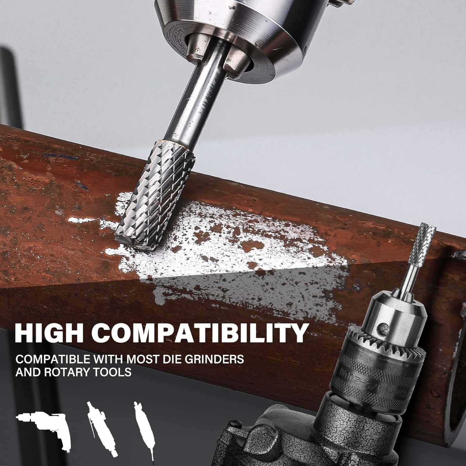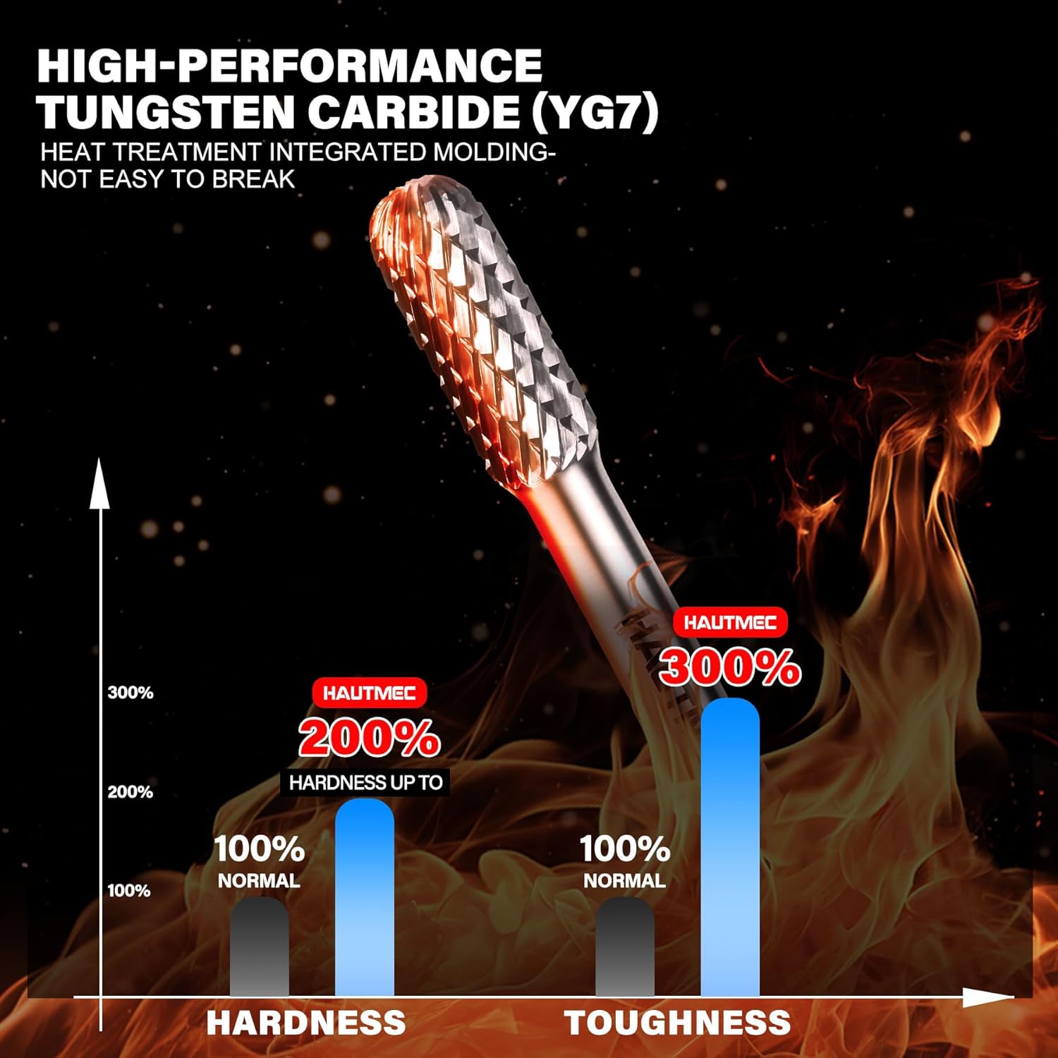 - 【Industrial-Grade Tungsten Carbide】Crafted from premium YG7 solid carbide and heat-treated for maximum hardness and strength. Engineered to withstand extreme workloads with 8X longer lifespan than standard HSS burrs—ideal for high-demand metal fabrication, machining, and industrial use