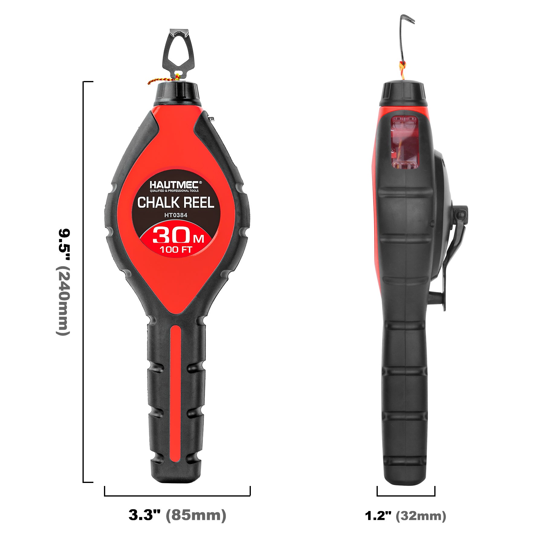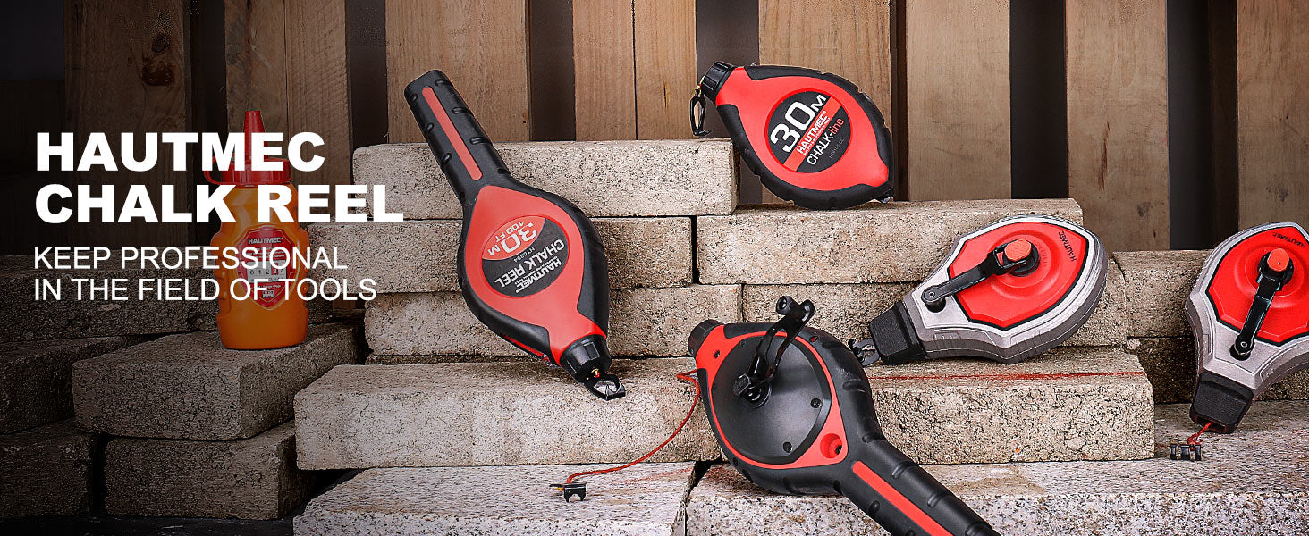 HAUTMEC Pro Chalk Line, Handle with Chalk Line Tool Releaser, 30m/100ft Bold Chalk Reel, Layout Chalk Box, Handle with 6:1 Gear Ratio Speed, HT0384-CL