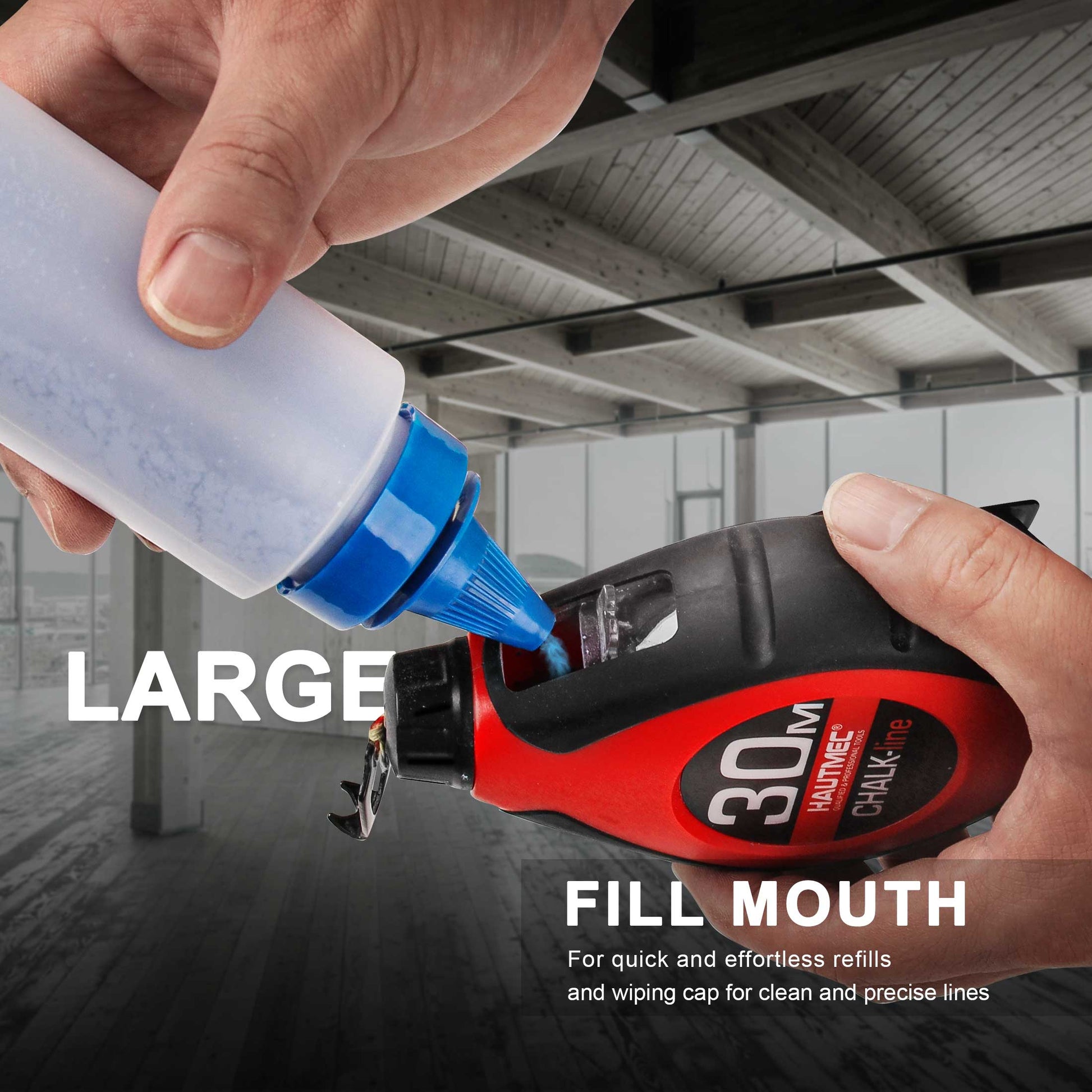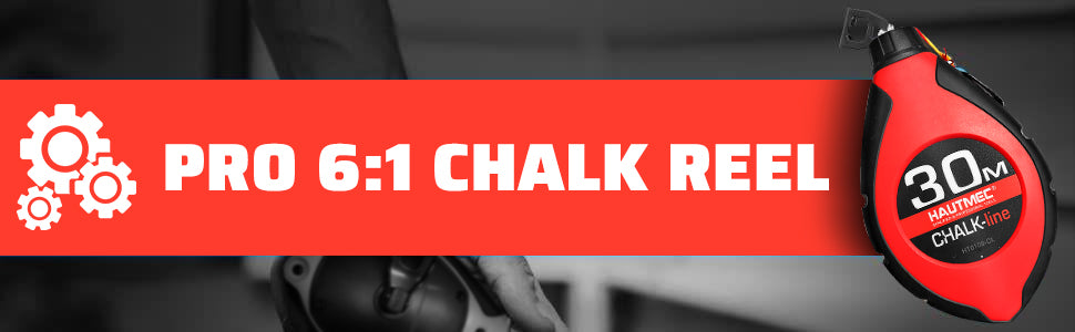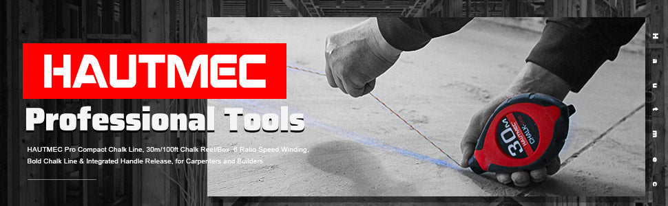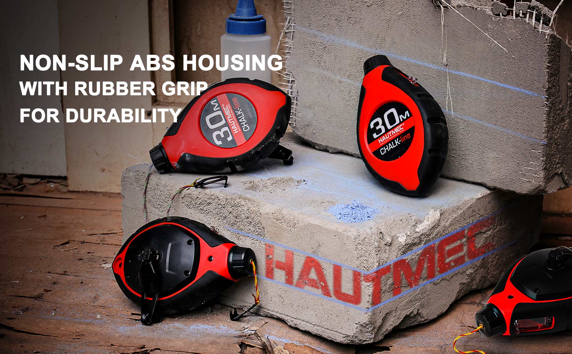 HAUTMEC Chalk Line with 30m/100ft Chalk Line Tool, 6:1 Gear Ratio Chalk Box, Ideal for Deck Builders, Framers, and Roofers HT0108