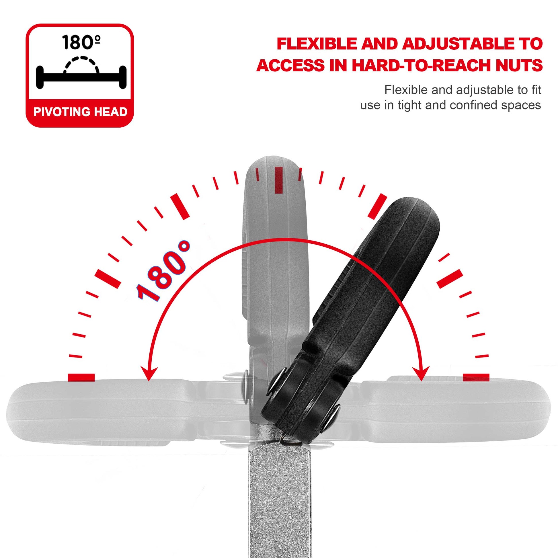 - 180 DEGREE ROTATING HEAD - Pivoting head holds any position up to 180 degree angle, enabling swift adjustments to obstructions and easy access hard-to-reach places and helps you better apply your force