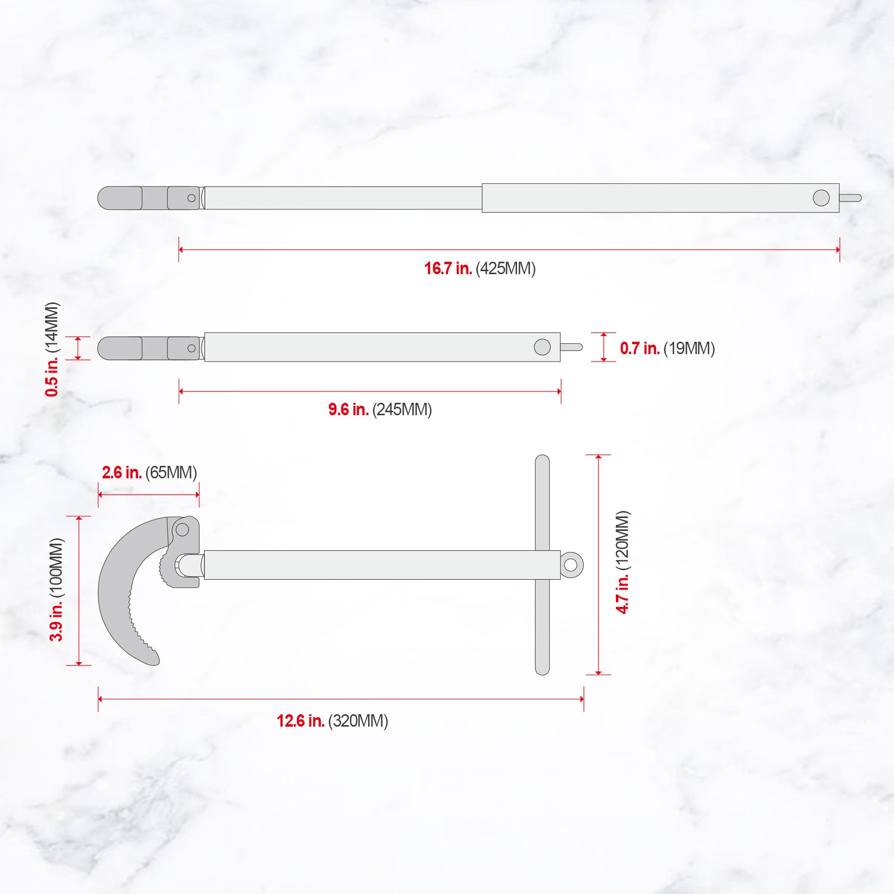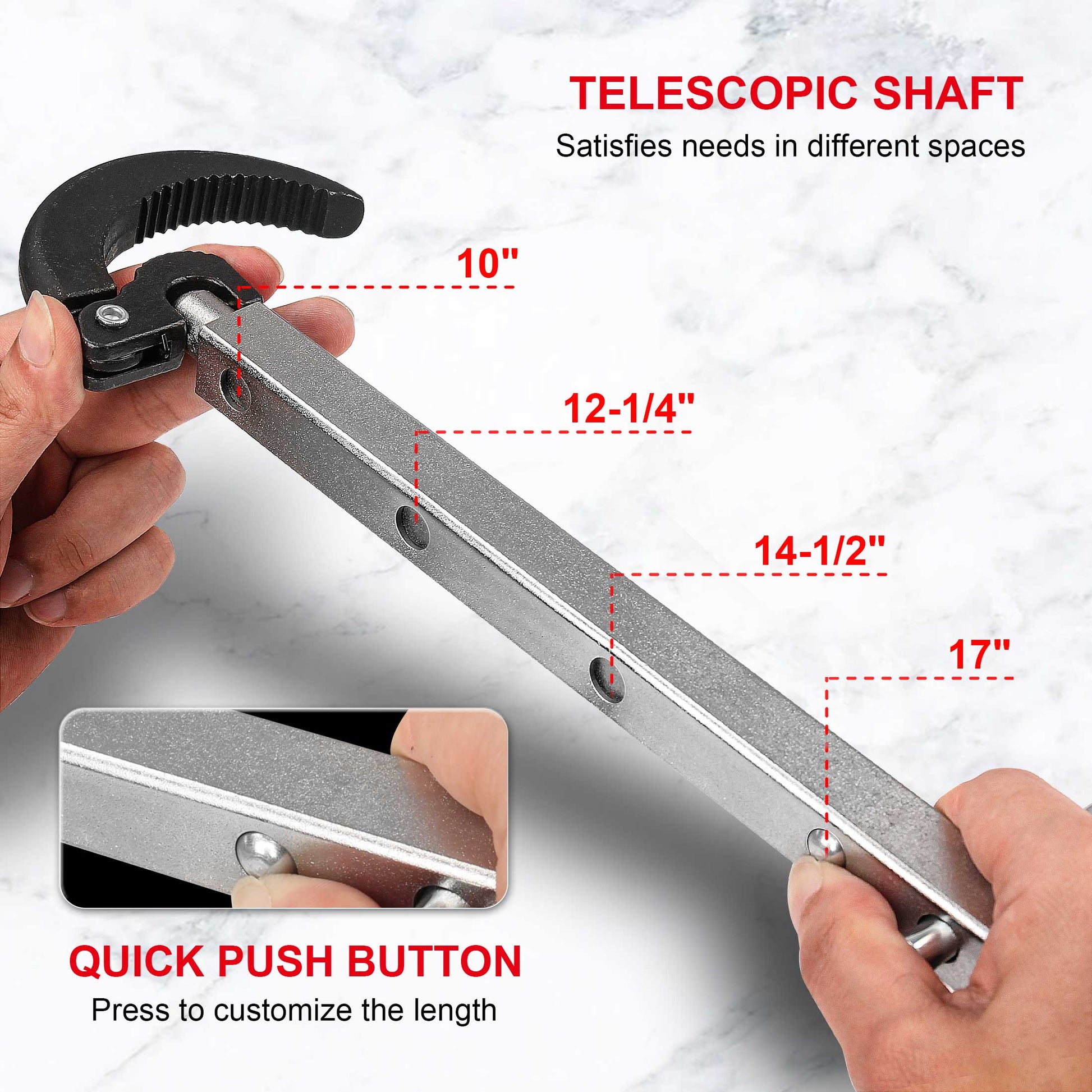- TELESCOPIC SHAFT - Long-reach chorme plated telescoping shaft extends from 10 to 17 in. with 4 positions, adapting to any situation; with a removable 8in. durable handle, the wrench also features easy storage in a toolbox or drawer