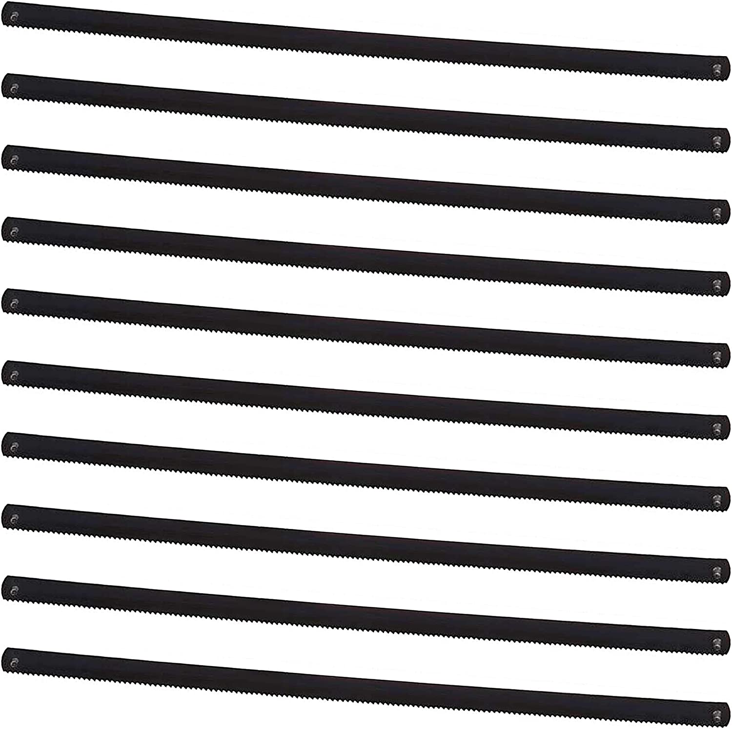 - 10 pack Bi-Metal mini hacksaw frame replacement blades 6" long between bins, 0.025" thick x 0.24" width, professional grade