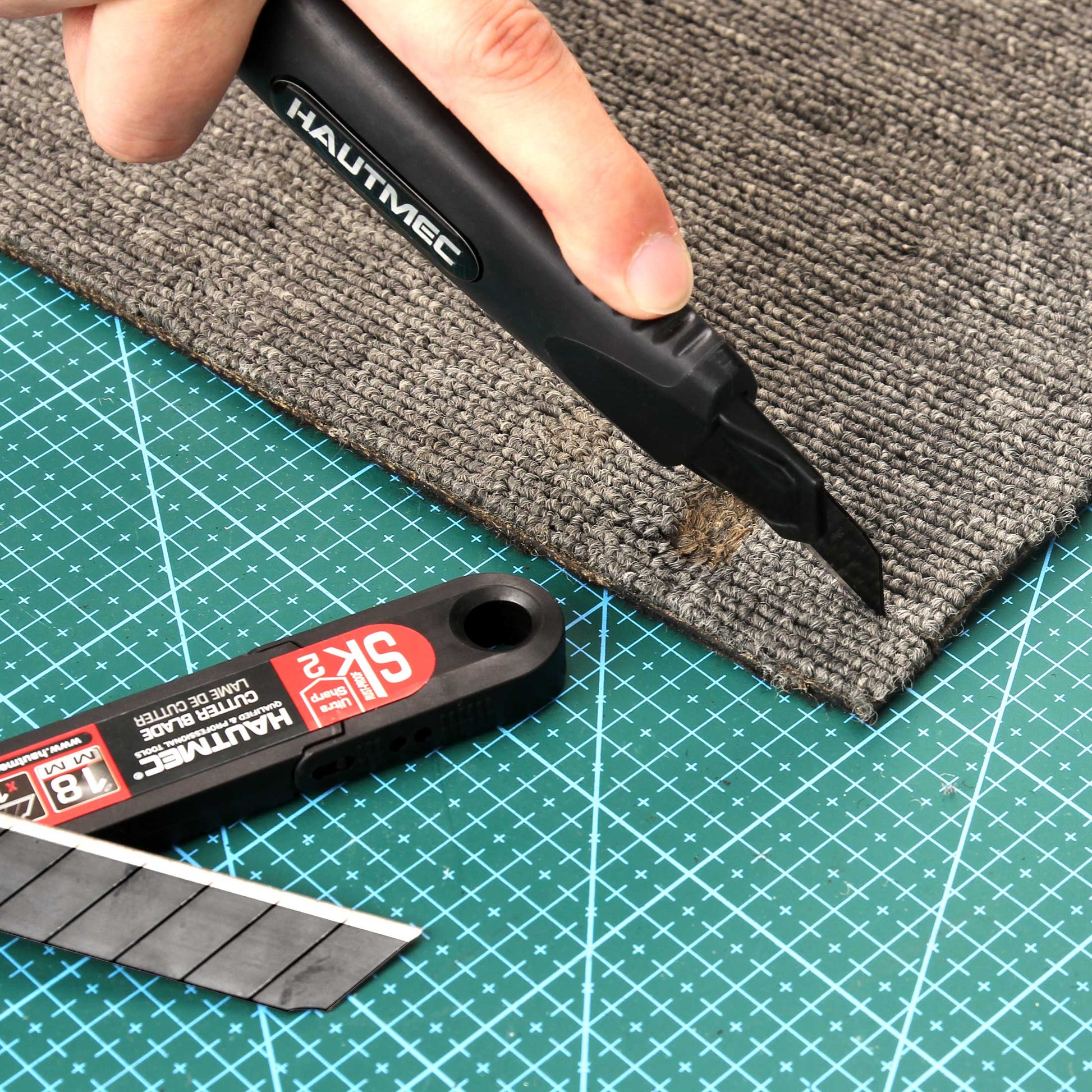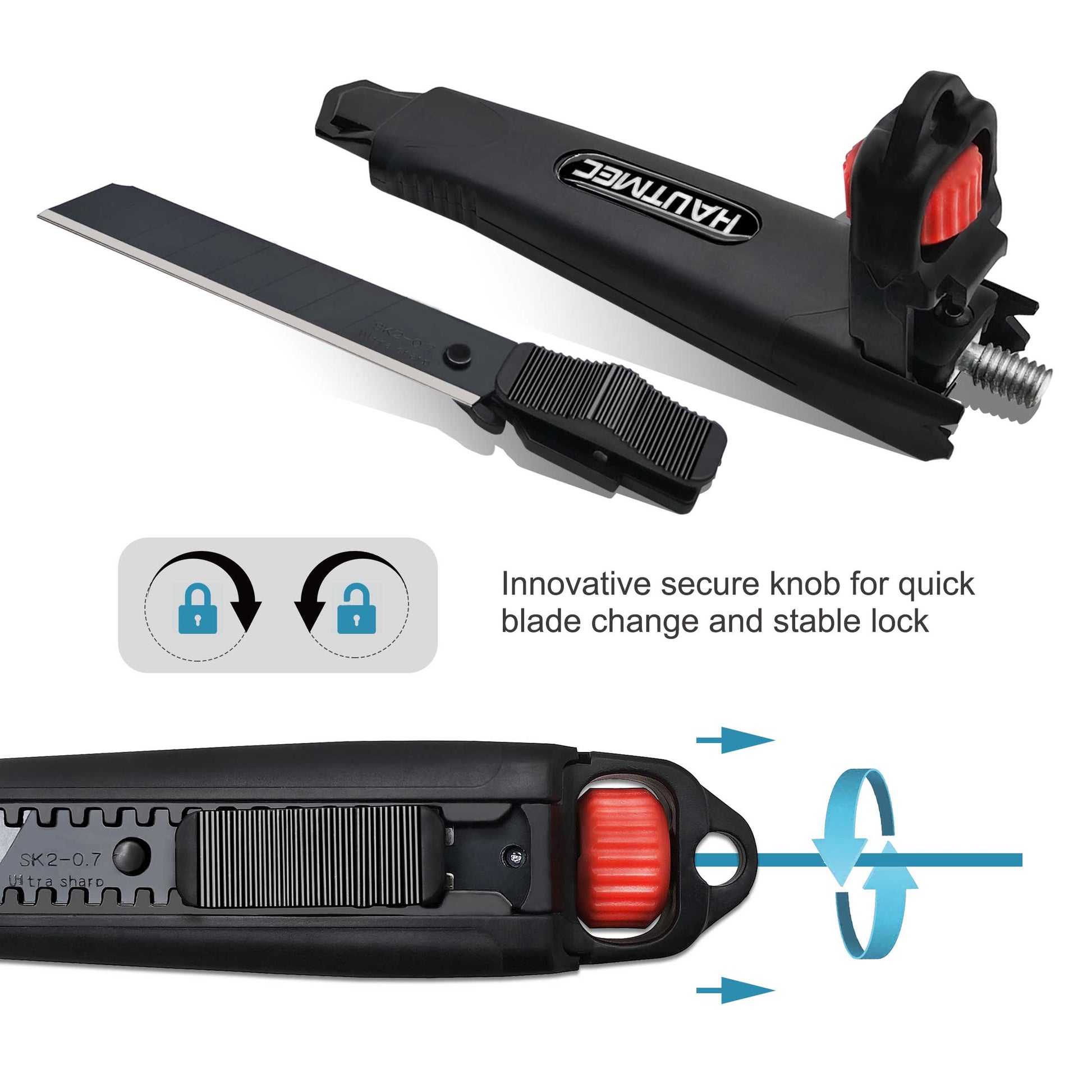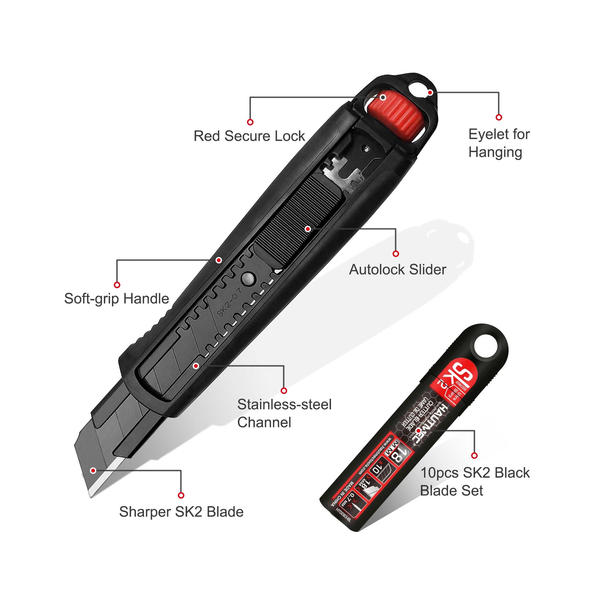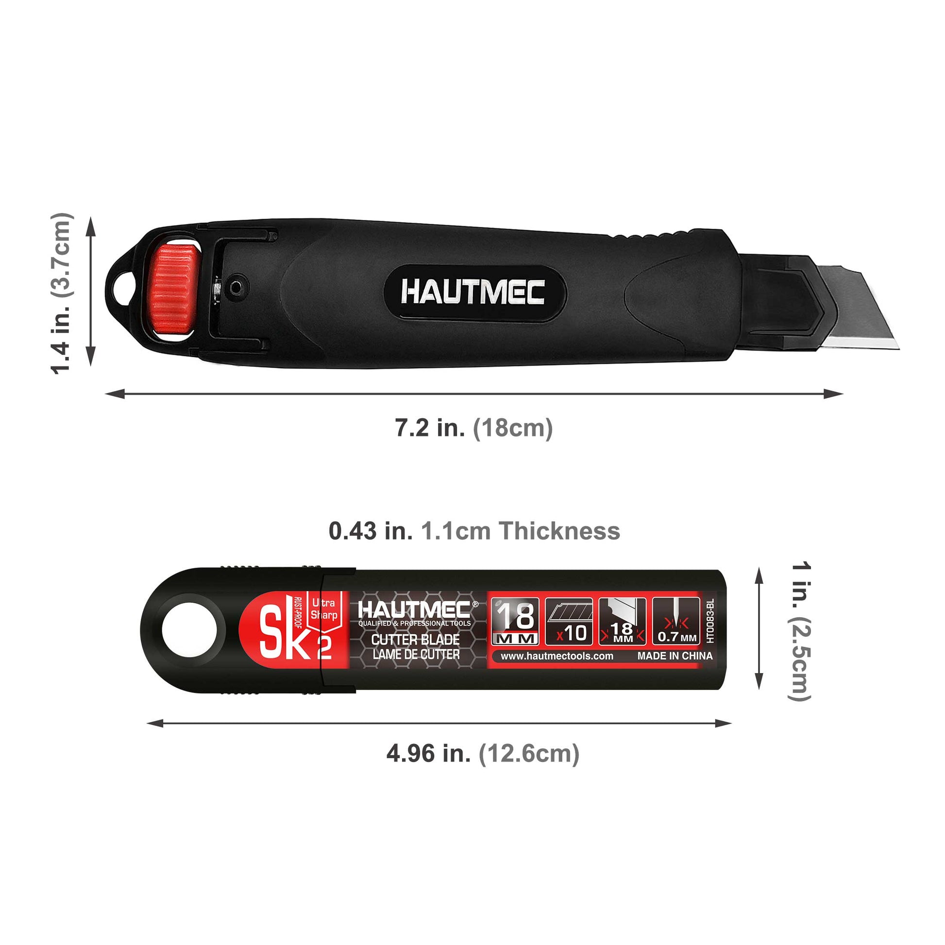 HAUTMEC Professional Safety 18mm Heavy-Duty Utility Knife with Red Secure Knob and 10pc Blade Set HT0153-KN