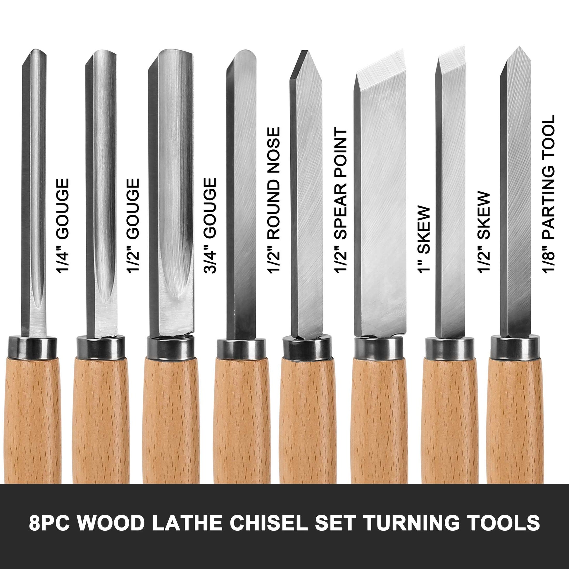 HAUTMEC Professional Wood Turning Chisel 8 pcs Set, Lathe Chisel Set with 2 Skew 1 Spear Point 1 Parting 1 Round Nose & 3 Gouge Tools for Beginners, Hobbyists and Professionals HT0237-WW