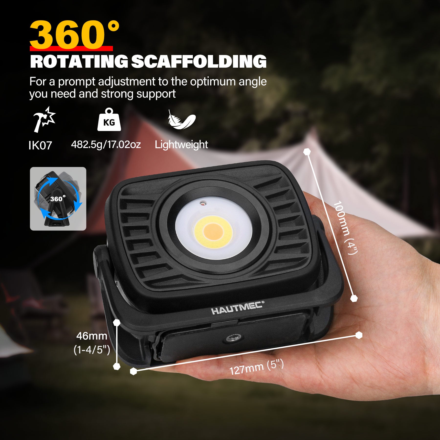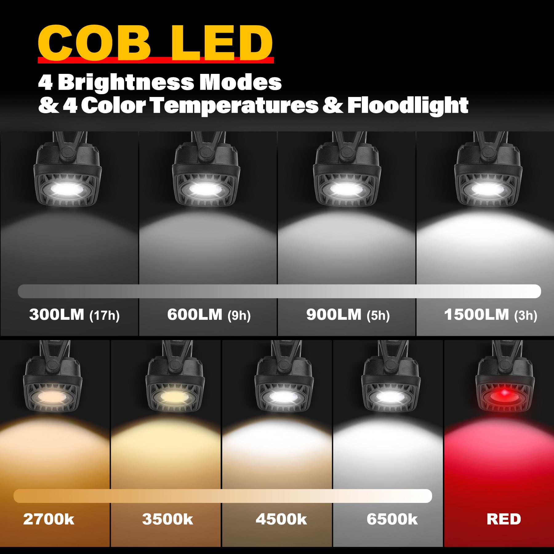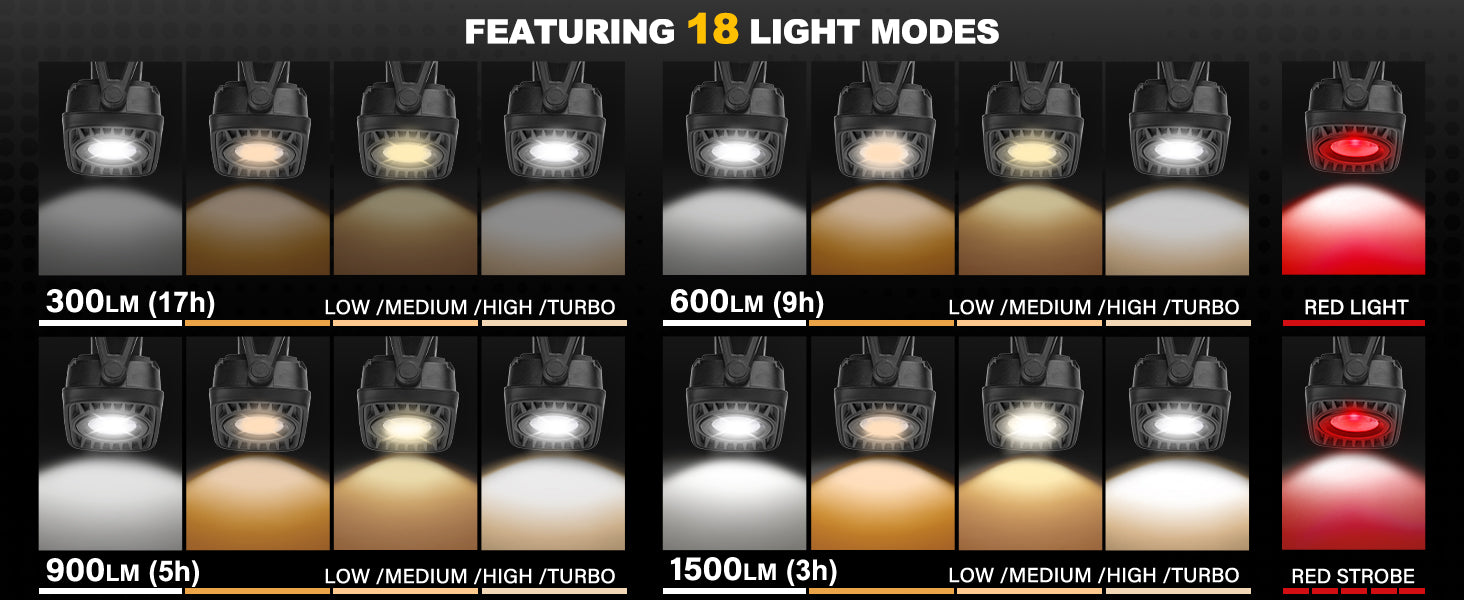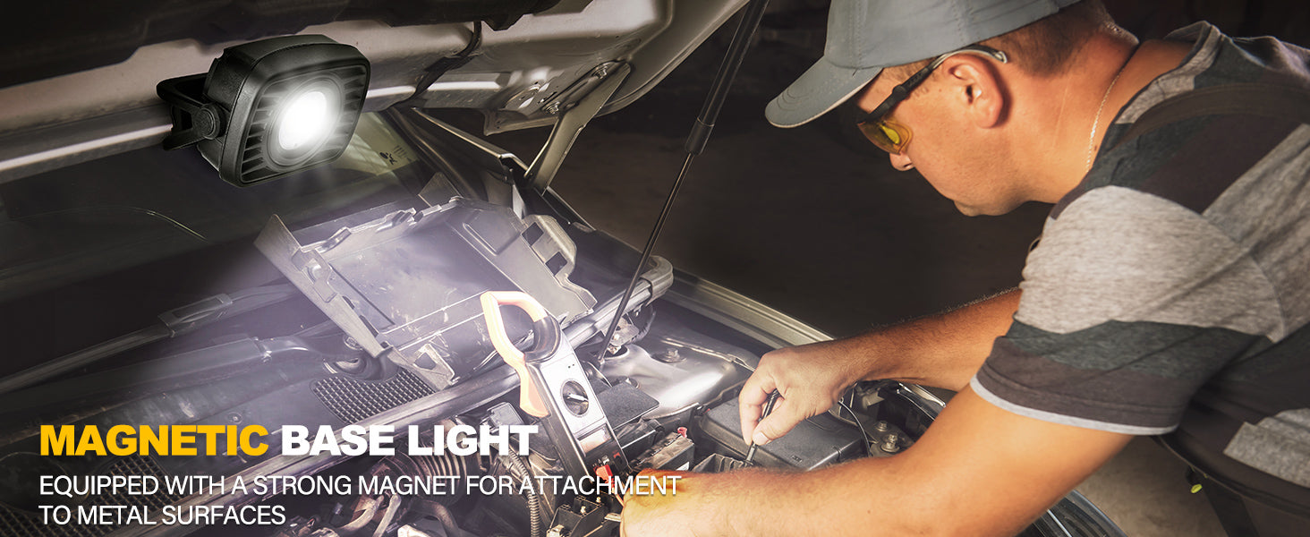 - 【360°Super Bright COB Output】1500 Lumen COB LED Light for perfect lighting in different working environments. The maximum lighting distance is 60M/196ft in the highest brightness mode. 360°rotation facilitates prompt adjustment to the optimum angle you need