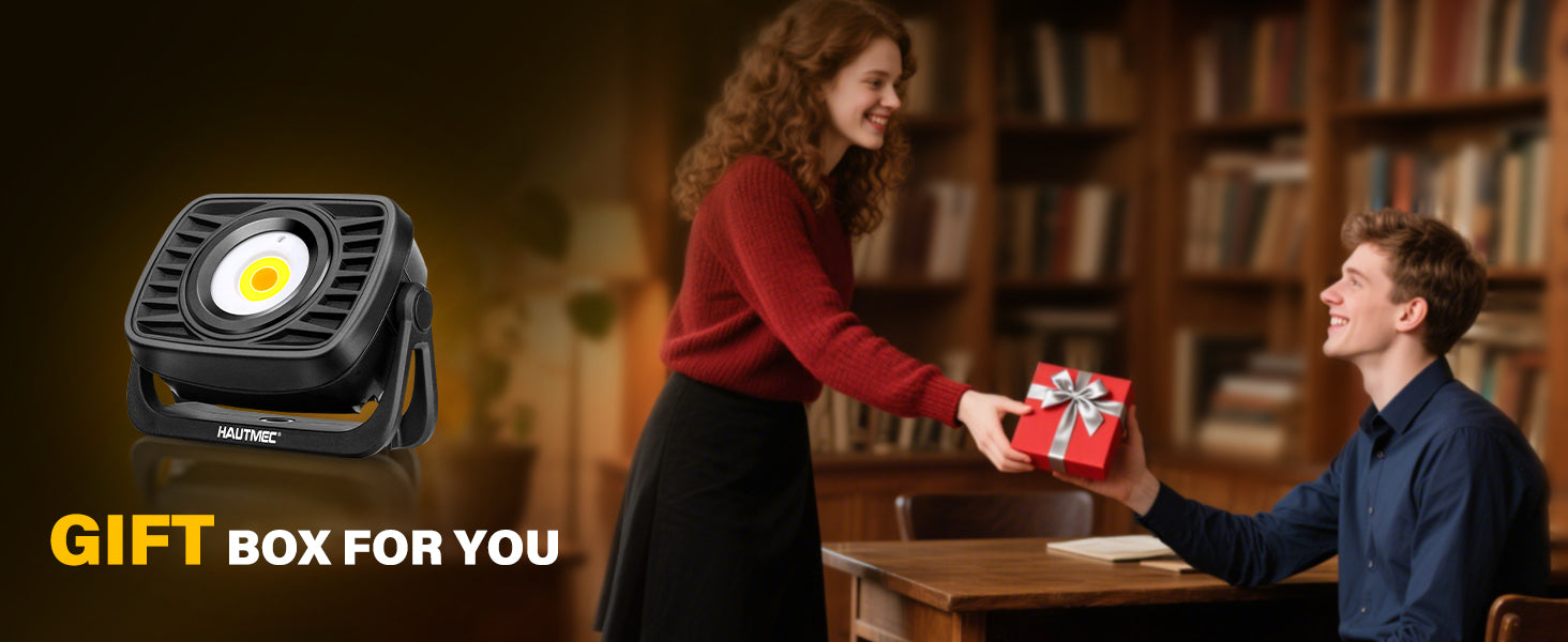 HAUTMEC Rechargeable Work Light, 360°Rotating COB 1500LM Portable Flood Light with Magnetic Base and Pothook, Waterproof Power Bank Worklight Tool for Car Repairing Construction Sites, HT0168-WL