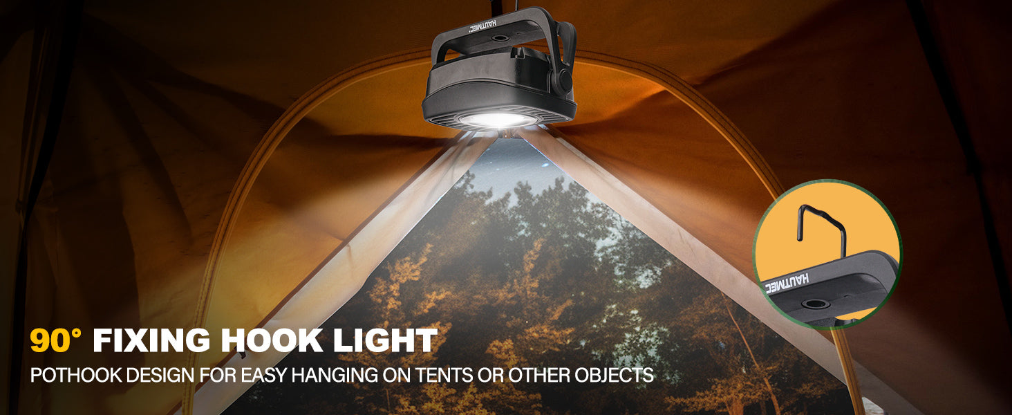 - 【Magnet & More Details】a strong magnet inside for attachment to a metal surface and hands-free operation; a rotating scaffold ensures oriented lighting and stable support; the pothook design allows the lamp to be hung on objects such as a tent; a hole at the bottom for fixing on a tripod; strong construction for rugged strength and excellent durability