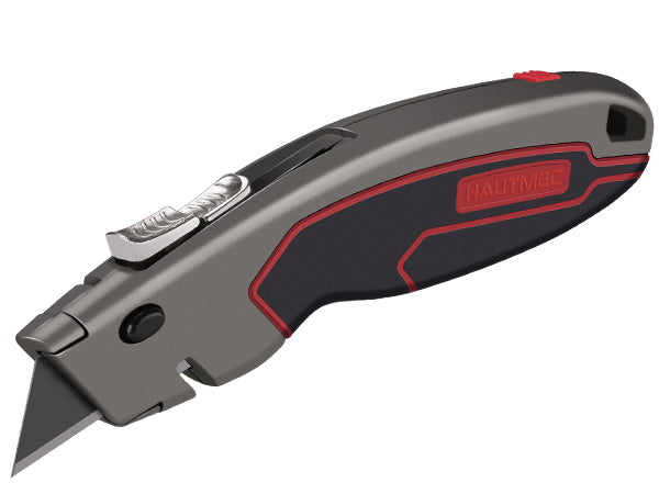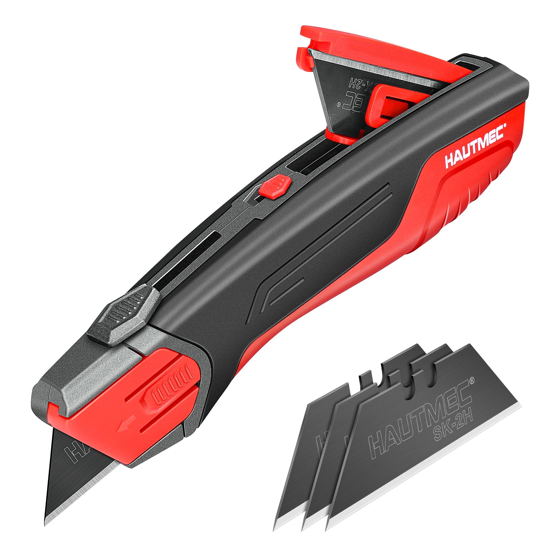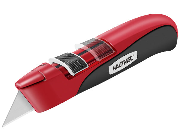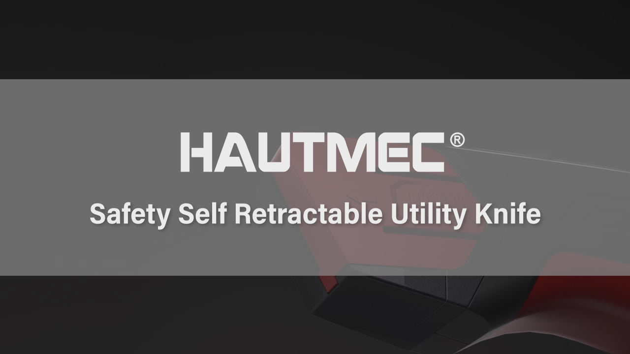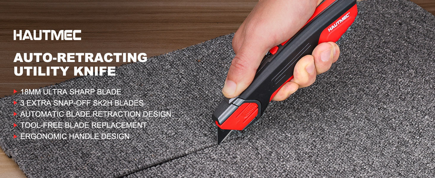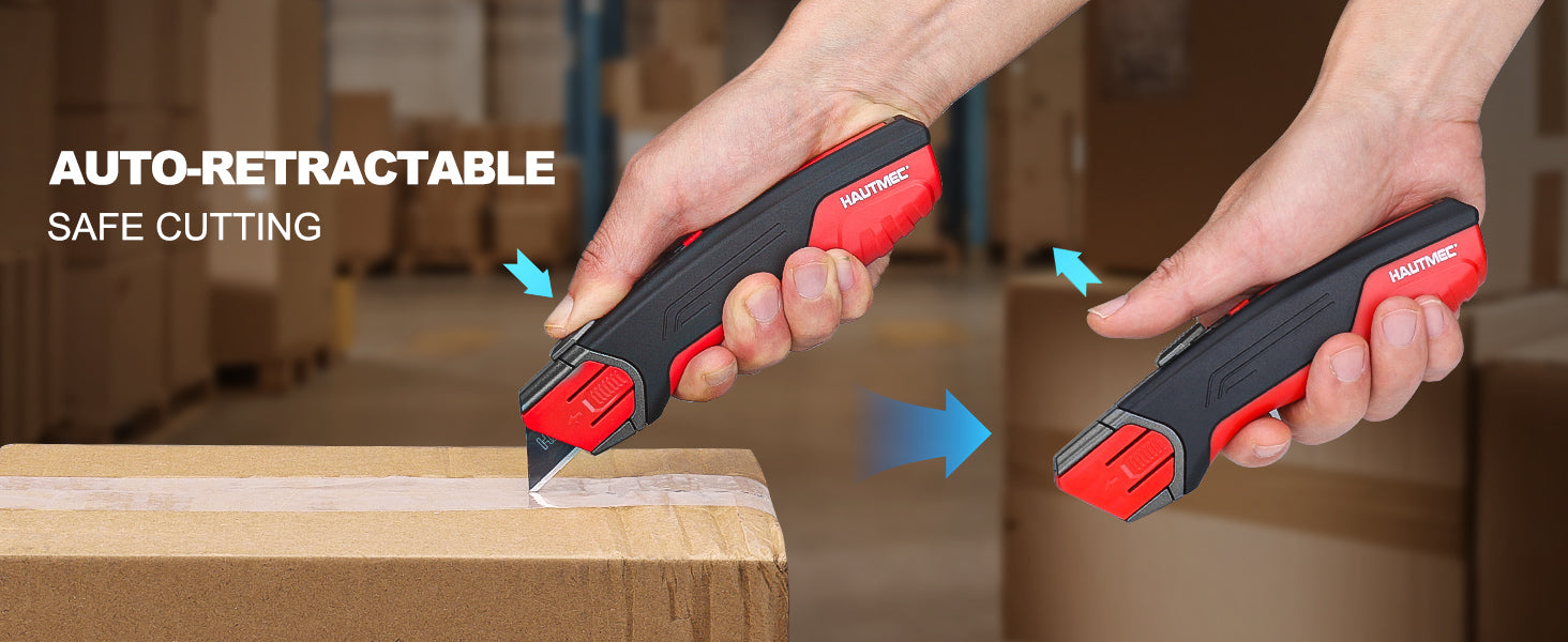 HAUTMEC Safety Self Retractable Utility Knife, Professional Heavy Duty Box Cutter With Extra 3 Black Sk2H Blades, Tool-free Blade Change, Safety Knife for Work HT0414-KN