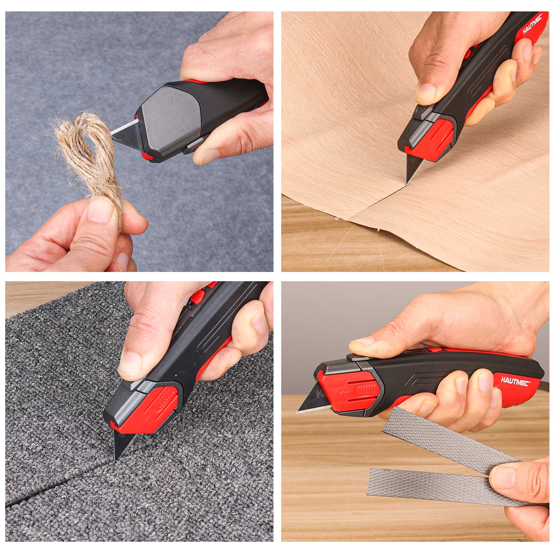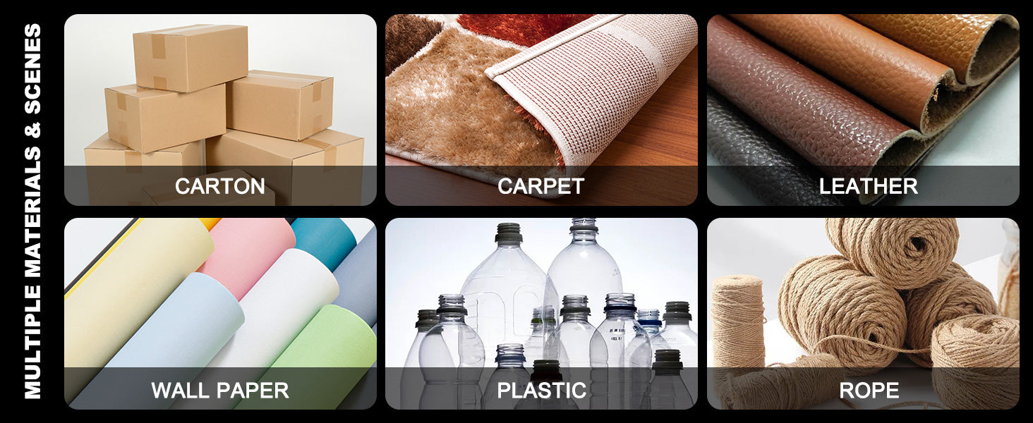 - 【Multiple Materials & Scenes】The utility knife is very suitable for cutting cartons, tarpaulins, boxes, carpets, plastic packaging, leather etc. Widely used in homes, offices, workshops and DIY projects etc.