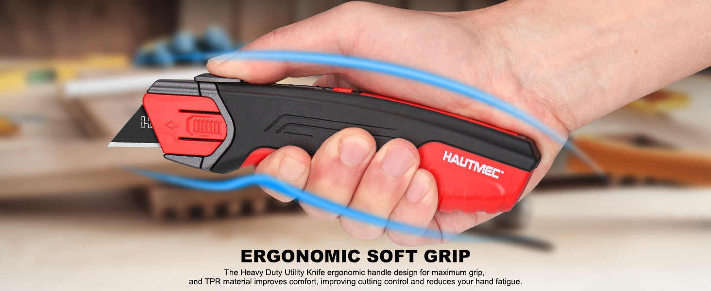 - 【Comfortable Handle Design】The Heavy Duty Utility Knife ergonomic handle design for maximum grip, and TPR material improves comfort, improving cutting control and reduces your hand fatigue.