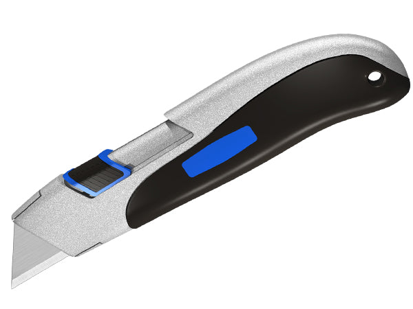- 【Heavy Duty Construction】: Aluminum alloy body with an aluminum alloy push button, resist the impact, deformation; This box cutter strongly supports the heavy duty cutting and ensures the long life.