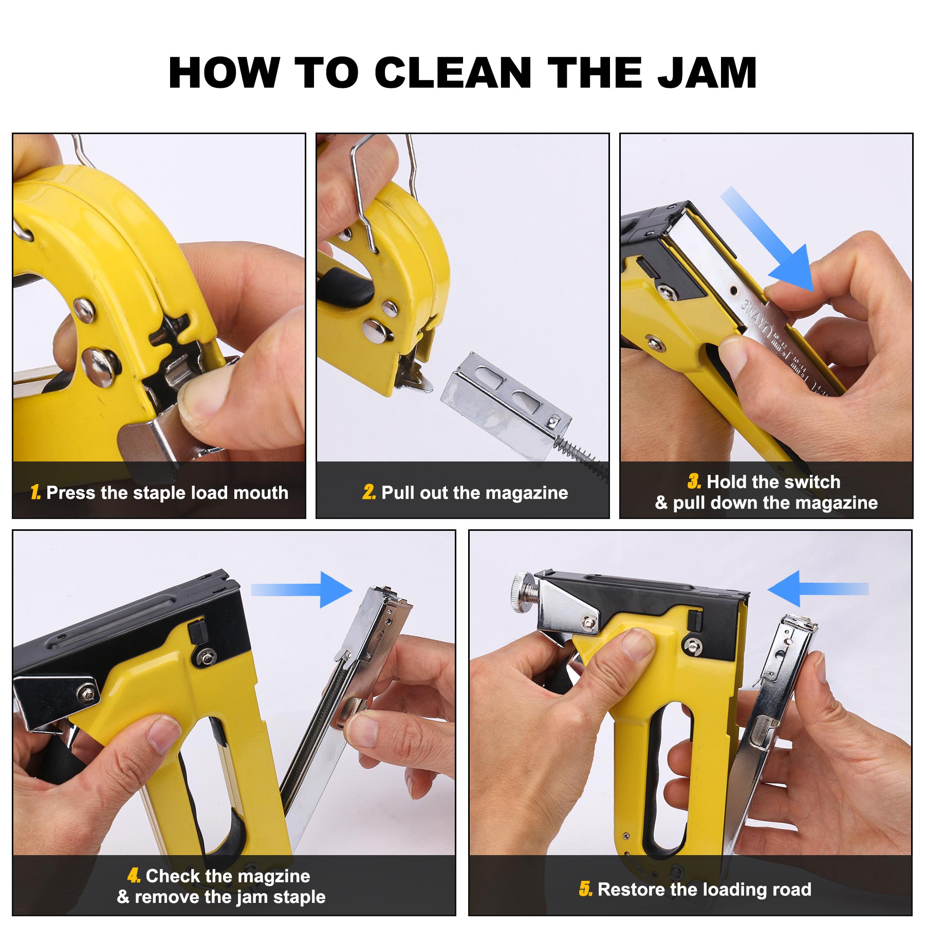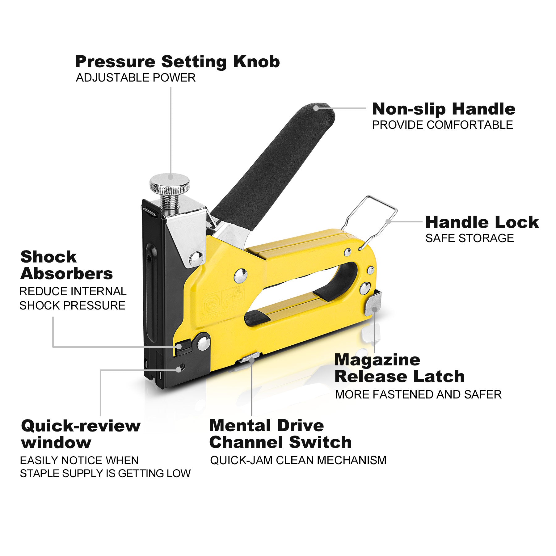 - QUICK-JAM CLEAR: Equipped with a jam clearing mechanism that allows for the quick removal of stuck staples.