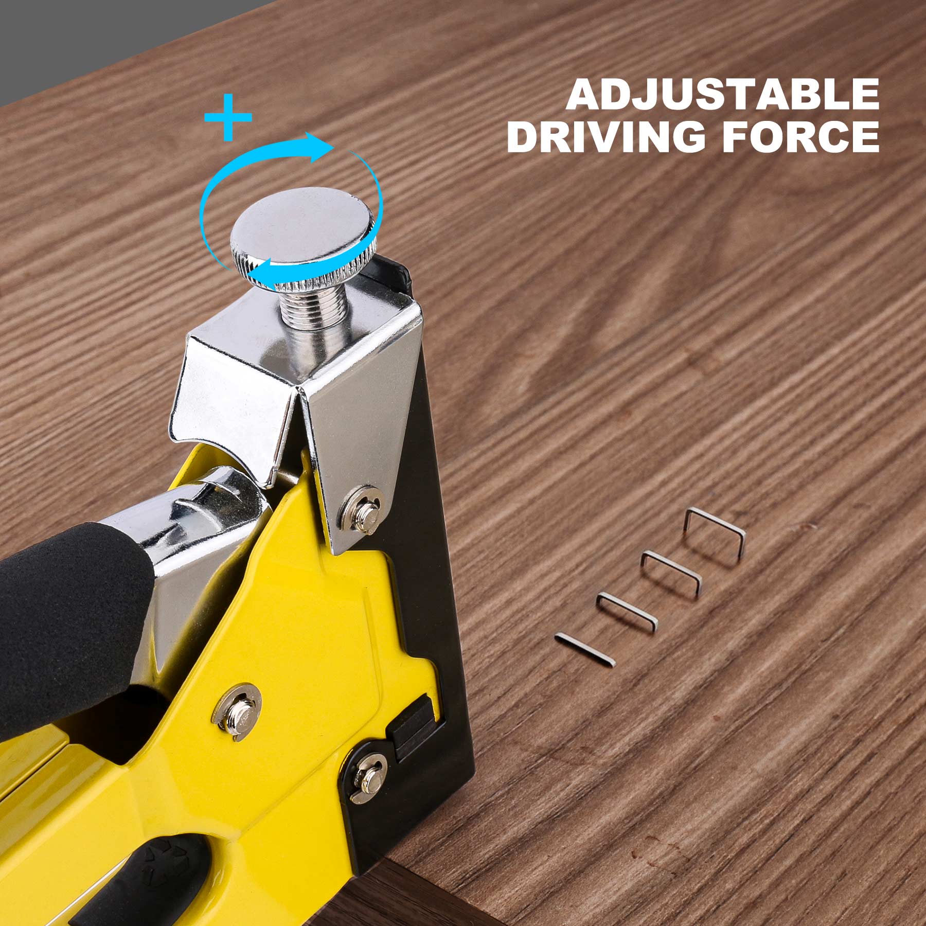 - ADJUSTABLE DRIVING FORCE: Adjustment knob adjusts driving force according the thickness of the material in your project, which will make your upholstery work easier.