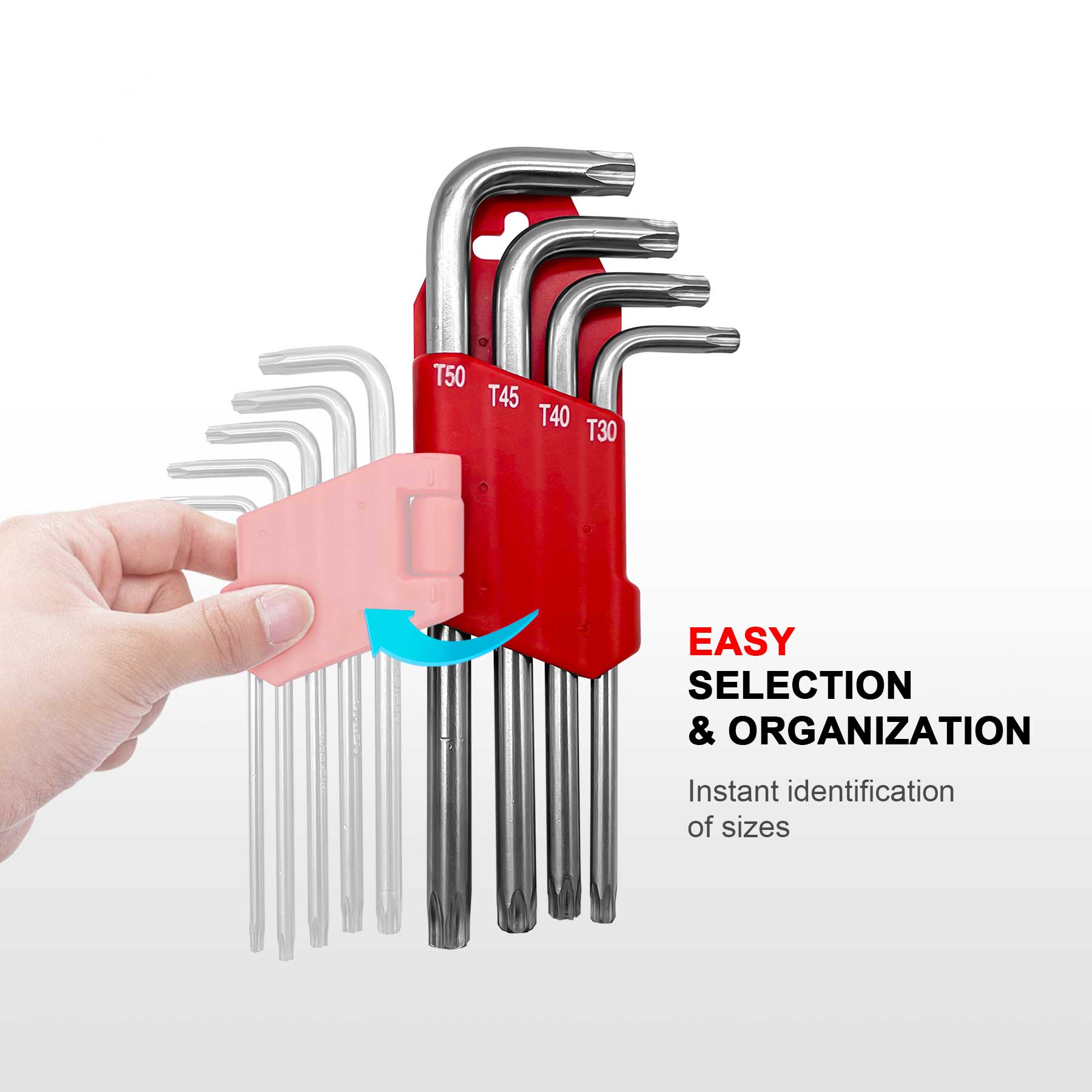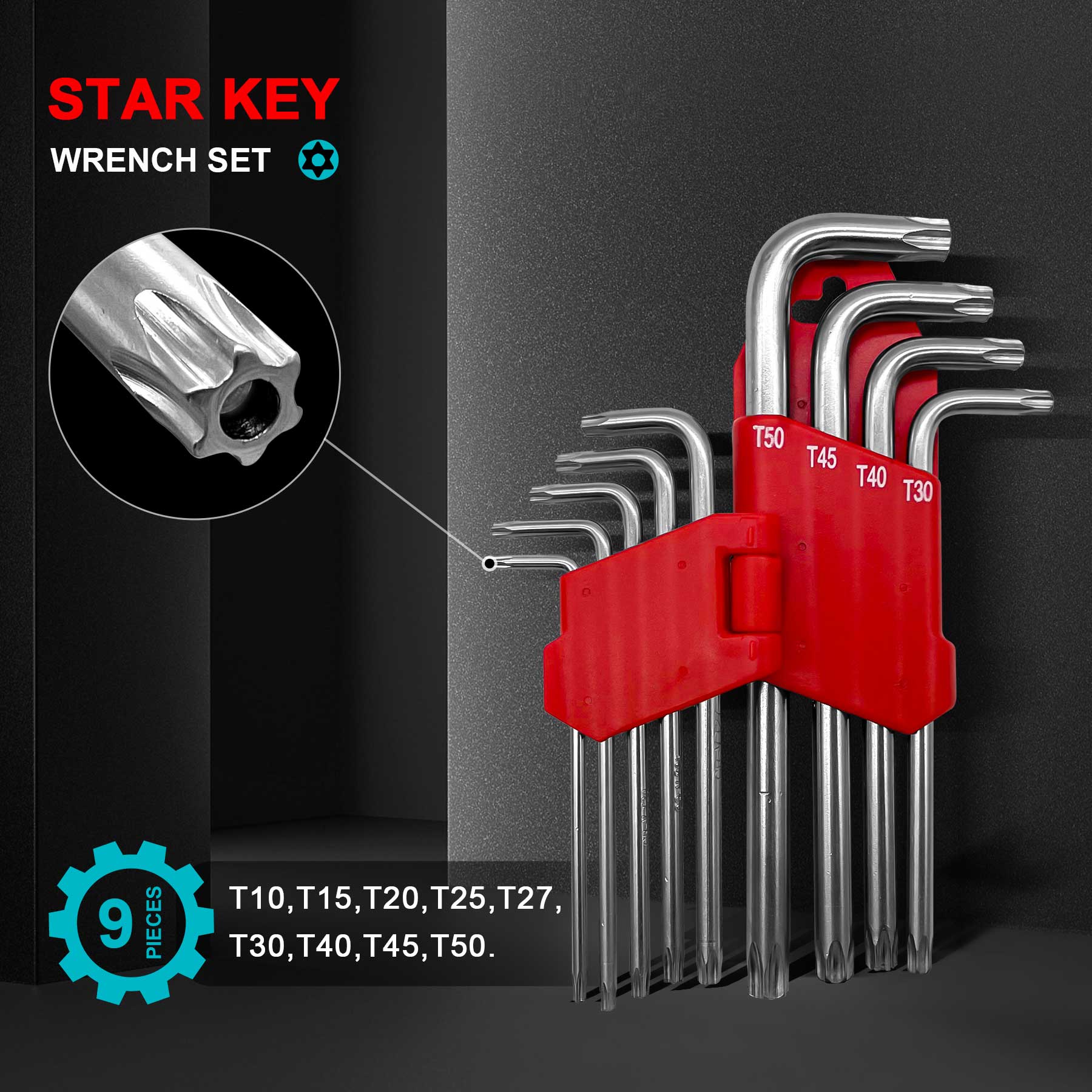 - MORE SIZE COVERAGE - Includes 9-pc star key wrenches: T10, T15, T20, T25, T27, T30, T40, T45, T50. Come in a sturdy hinged case with dedicated slots for secure storage and high-visibility sizes marked or easy selection & organization