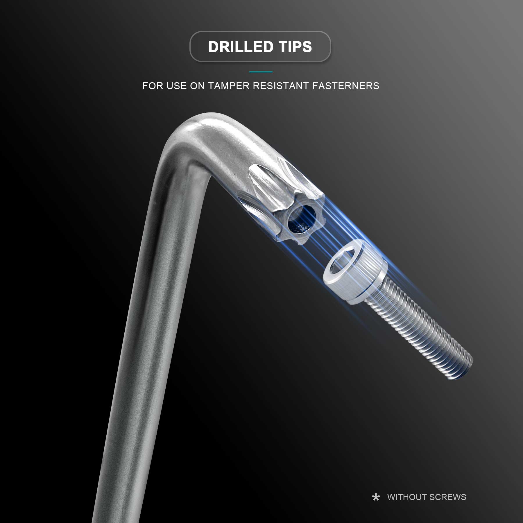- STAR END AND DRILLED TIP - Drilled tips are designed for use on tamper resistant fasteners, providing a snug fit and smooth insertion into fasteners and reducing wear on the wrench and damage to fastener head.