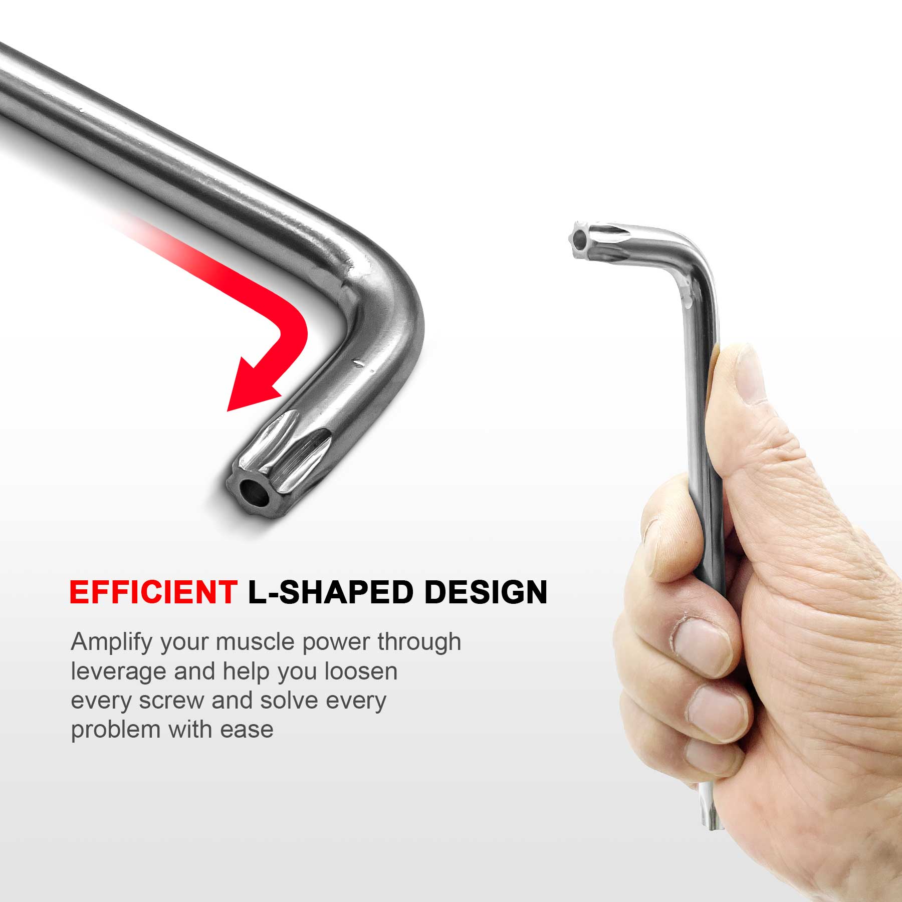 - EFFICIENT L-SHAPED DESIGN - Long/short arm design for longer reach in deeper work situations on the long end and strengthened leverage for tighter fasteners in narrower space on the short end