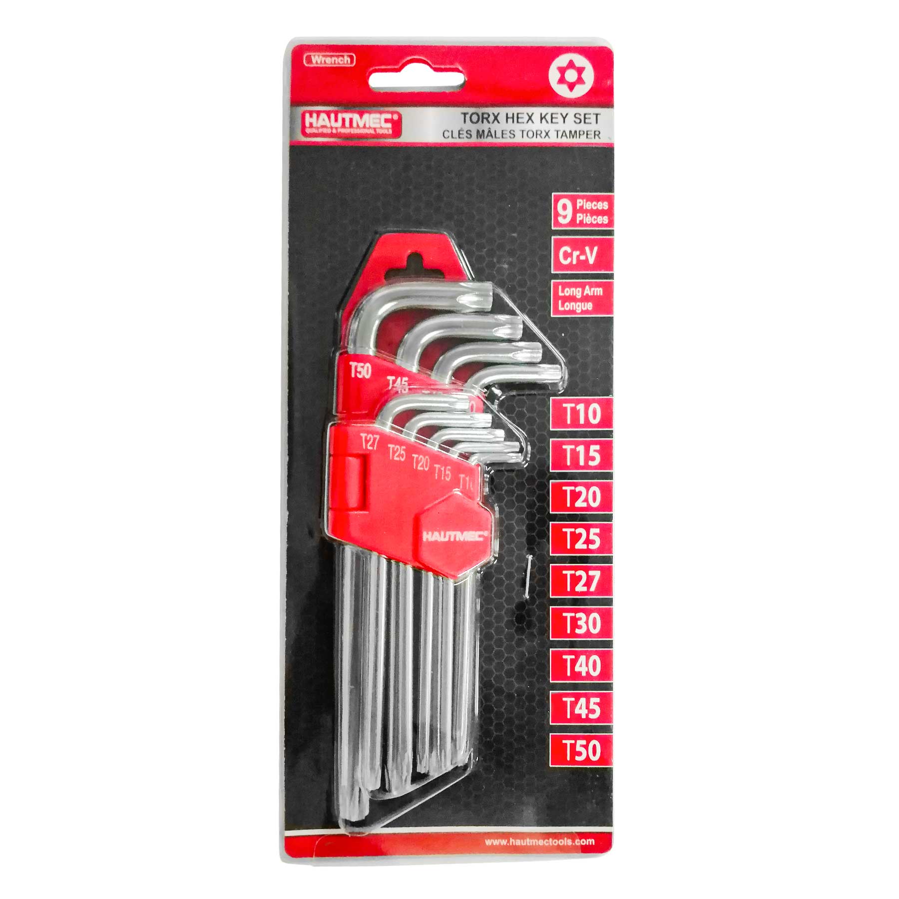 HAUTMEC Star Key Wrench Set, 9-Piece Torx Star Wrenches- Chrome Vanadium Steel and Drilled tips for Tamper Resistant Fasteners, HT0222-SS