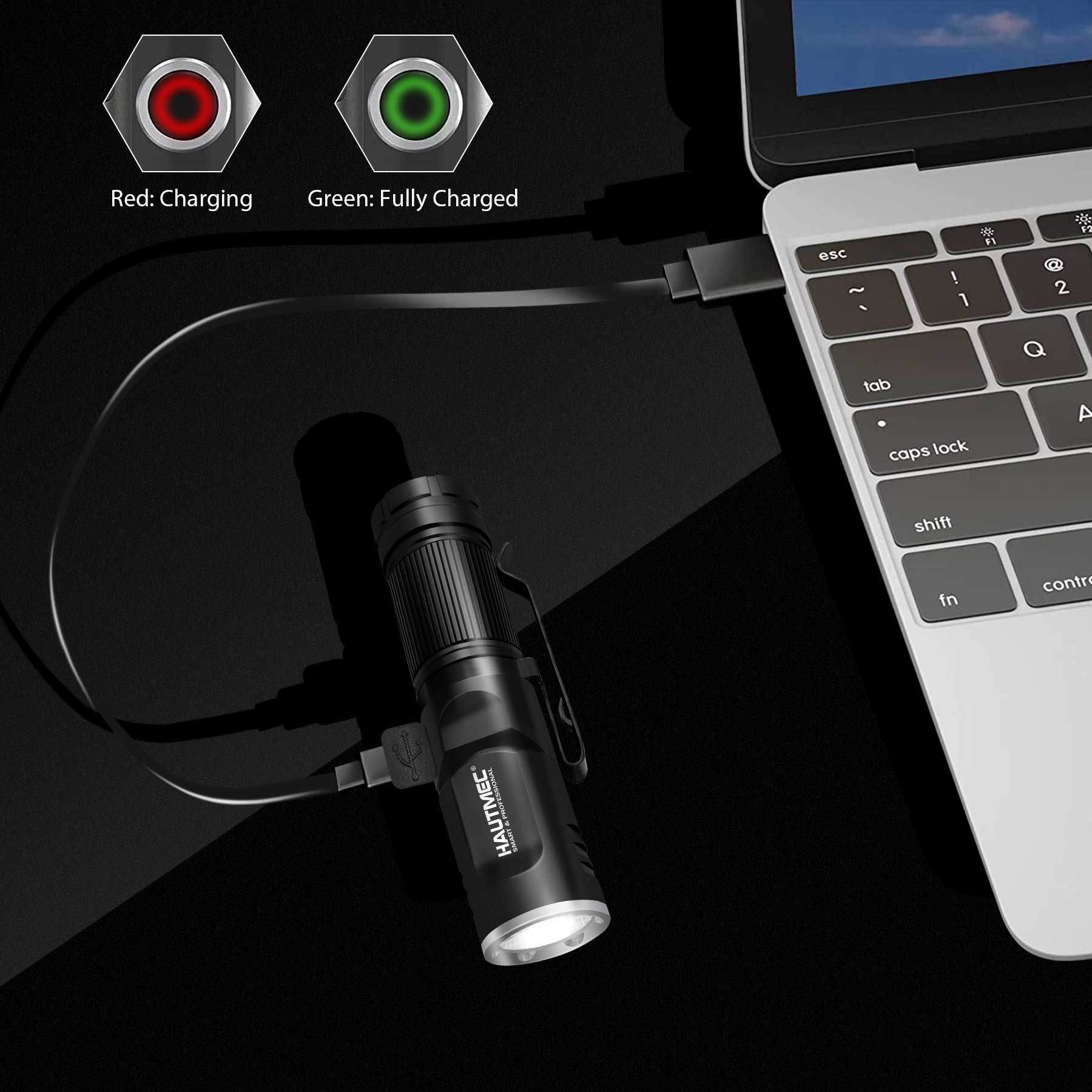 - RECHARGEABLE FLASHLIGHT: The flashlight is equipped with energy-saving LED and powered by a Li-ion battery, delivering the maximum output of 500 lumens. Rechargeable by USB port. Battery and USB charging cable included