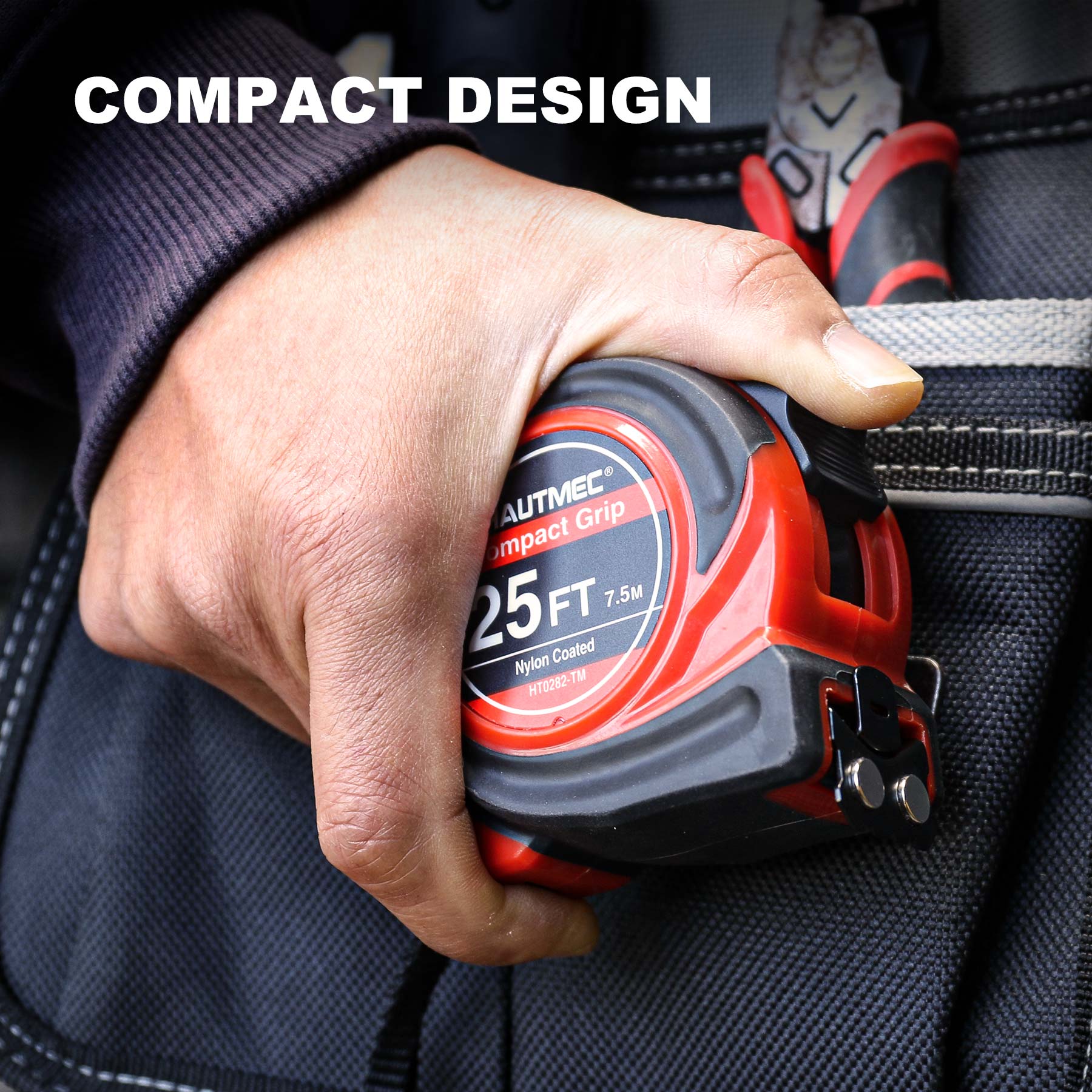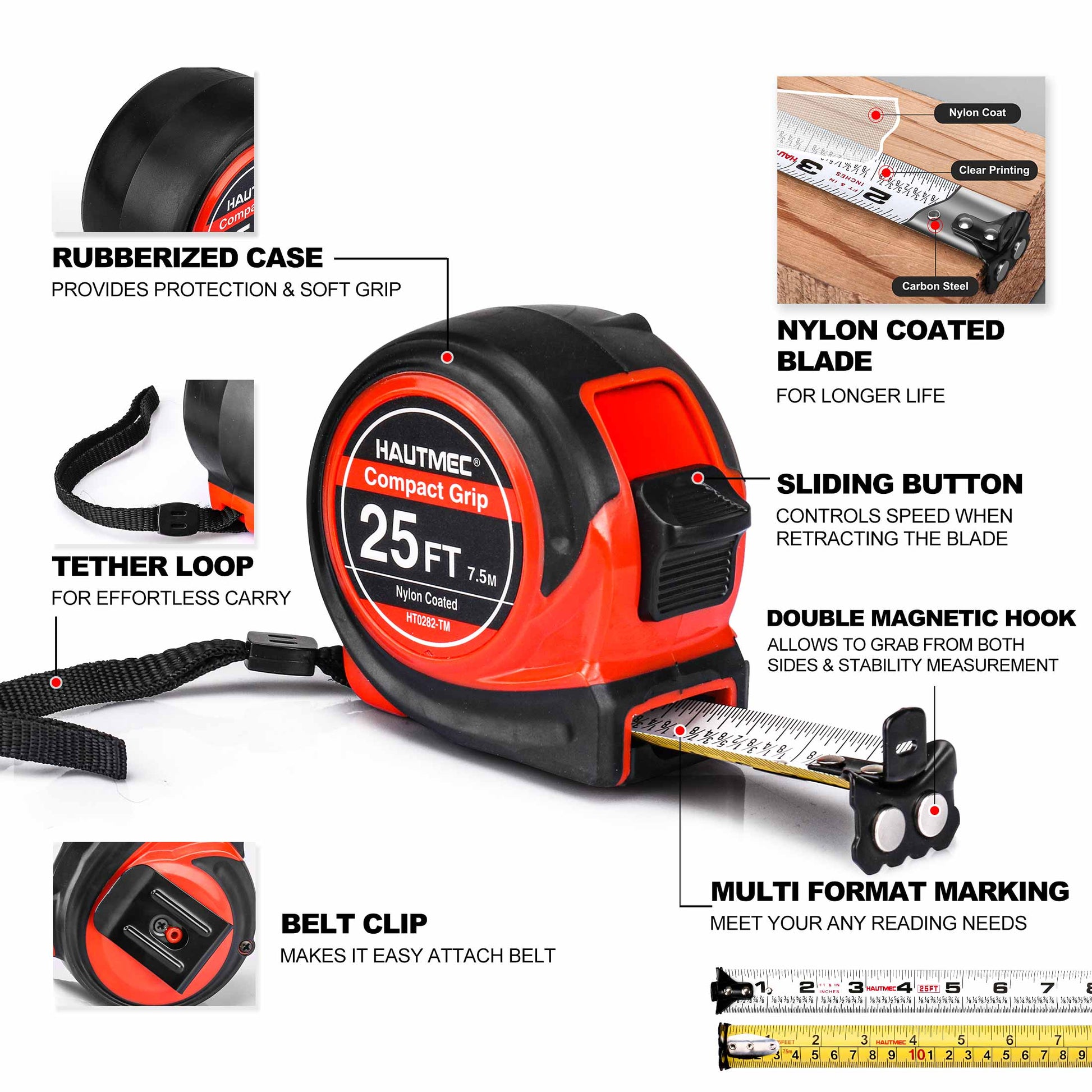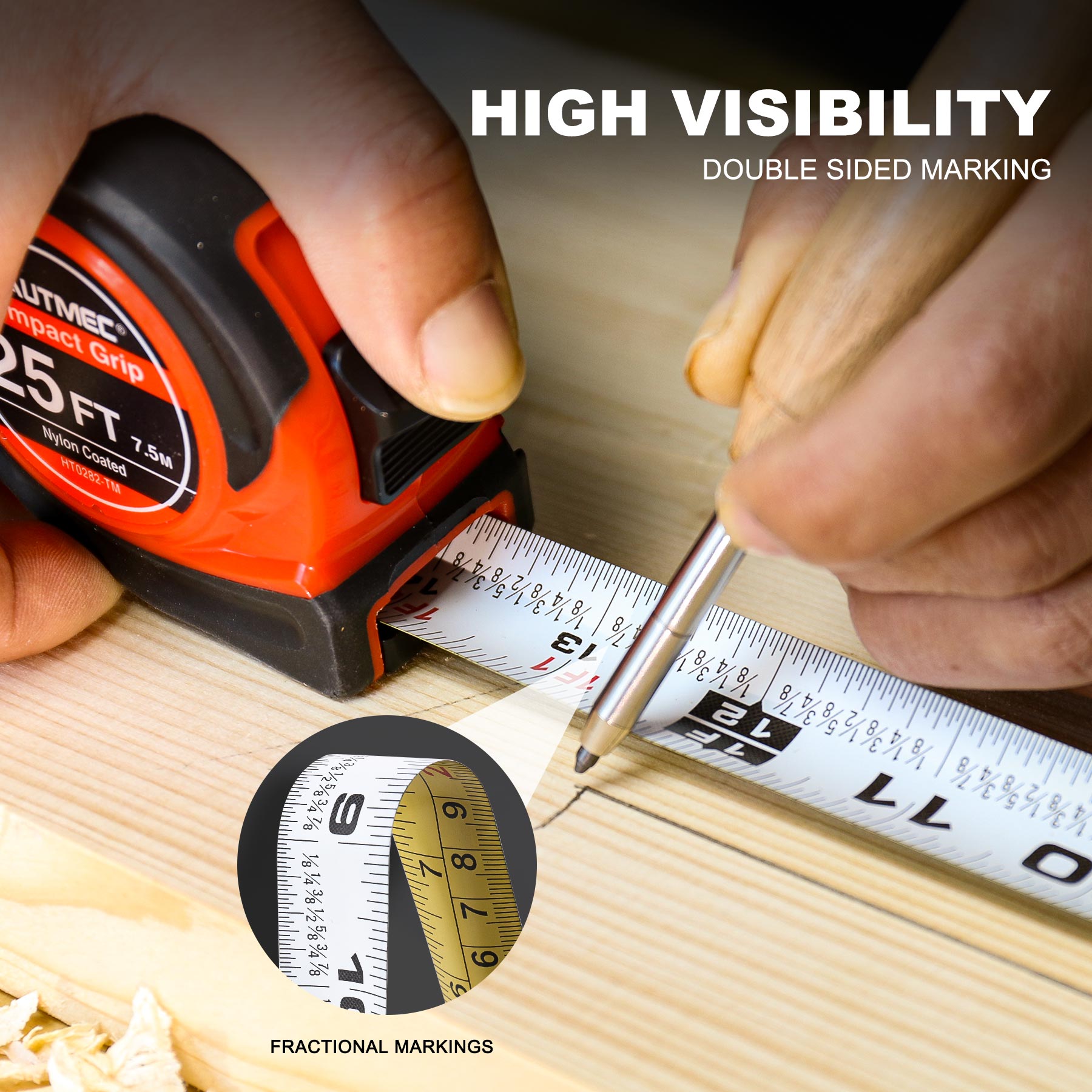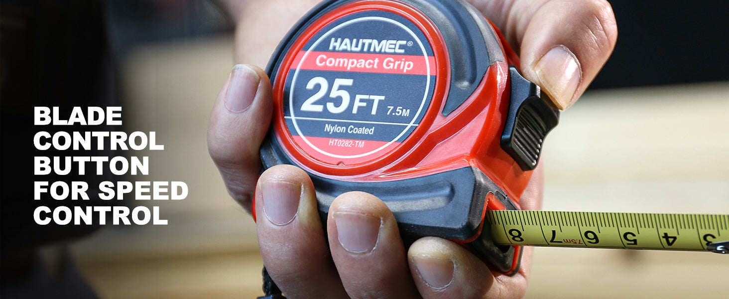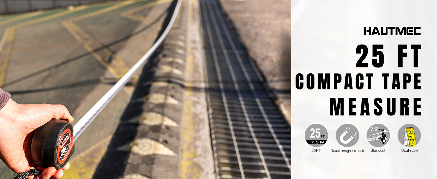 HAUTMEC Tape Measure 25Ft with Fraction 1/8,Double Side Metric and Inches Tape,Retractable Tape Measure,Magnetic Hook and Compact Case for Construction, Carpenter, Professionals HT0282-TM