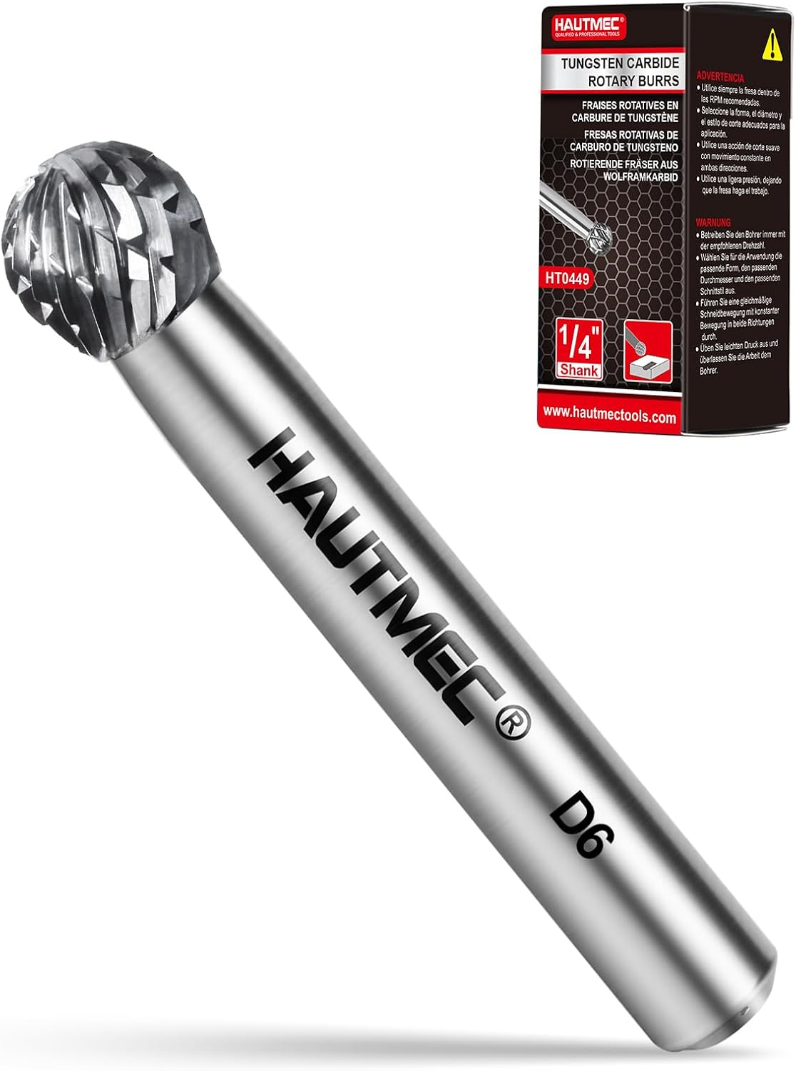 HAUTMEC Tungsten Carbide Rotary Burr Bit – 1/4" Shank, Double Cut Tungsten Rotary File for Die Grinder, Professional Grade, Suit for Metal Carving, Grinding, Engraving & Deburring - HT0449