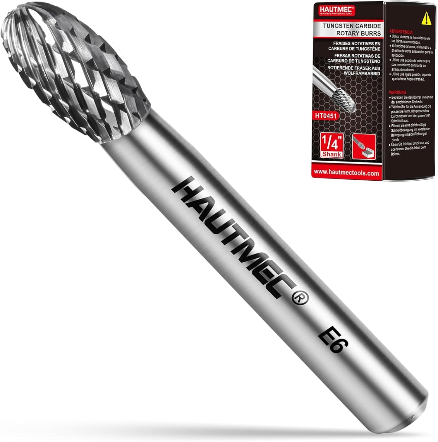 HAUTMEC Tungsten Carbide Rotary Burr Bit – 1/4" Shank, Double Cut Tungsten Rotary File for Die Grinder, Professional Grade, Suit for Metal Carving, Grinding, Engraving & Deburring - HT0451