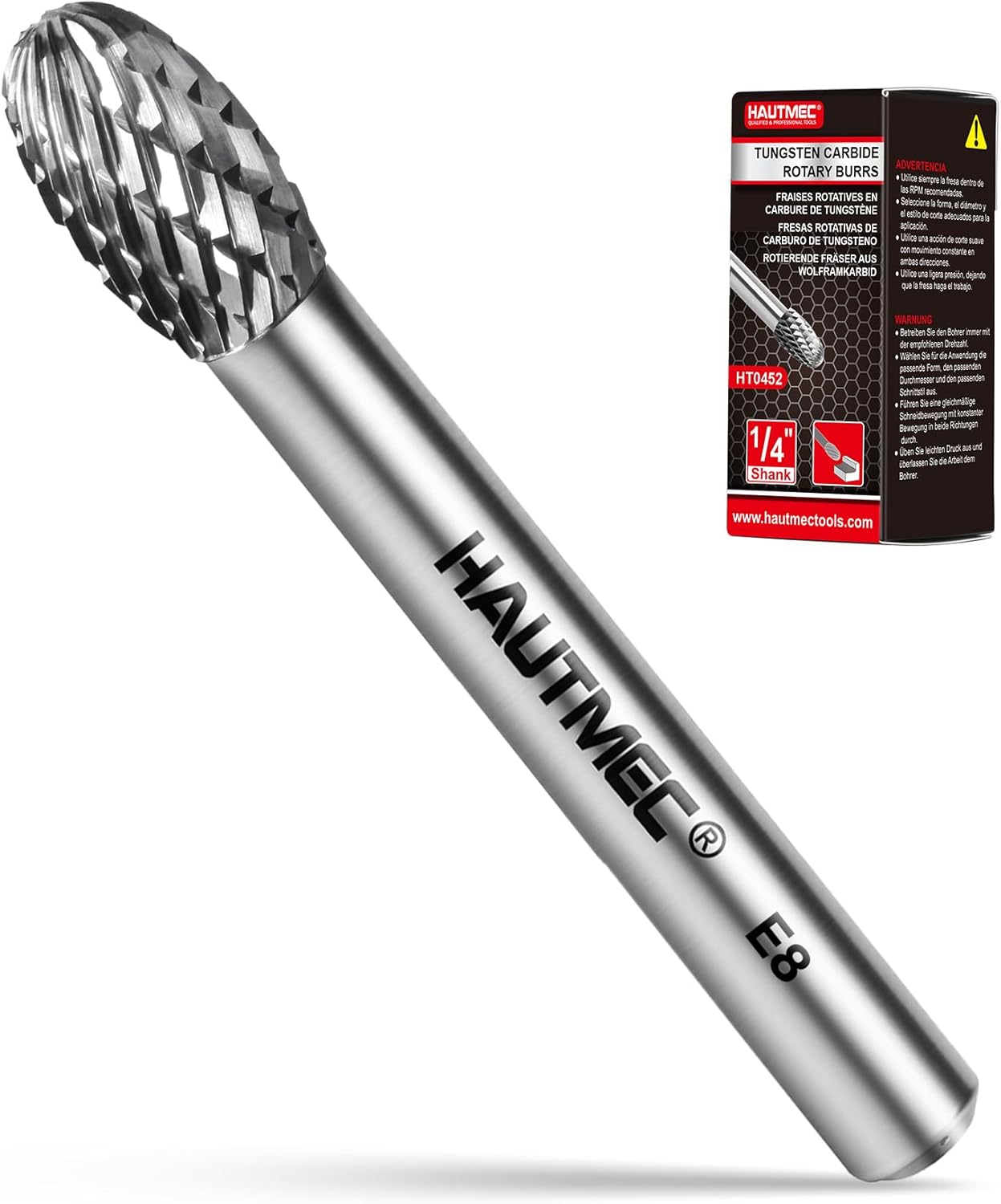 HAUTMEC Tungsten Carbide Rotary Burr Bit – 1/4" Shank, Double Cut Tungsten Rotary File for Die Grinder, Professional Grade, Suit for Metal Carving, Grinding, Engraving & Deburring - HT0452