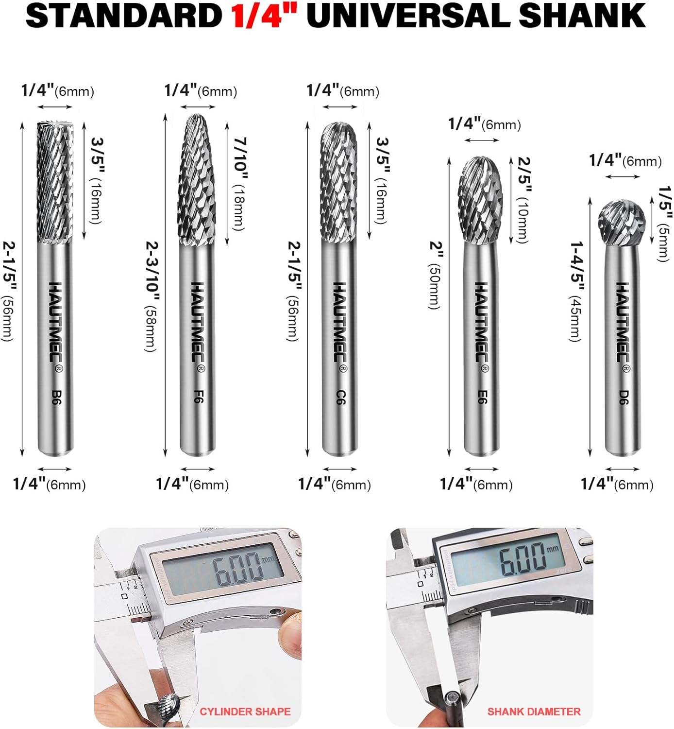 - 【Multiple Sizes & Shapes for Specialized Tasks】6mm burrs – Precision shaping in tight spaces; ideal for fine metalworking, ,woodworking, sculpting, and hobby models.8mm burrs – Enhanced stability and power for Heavy-Duty metalworking, weld cleanup, and industrial use