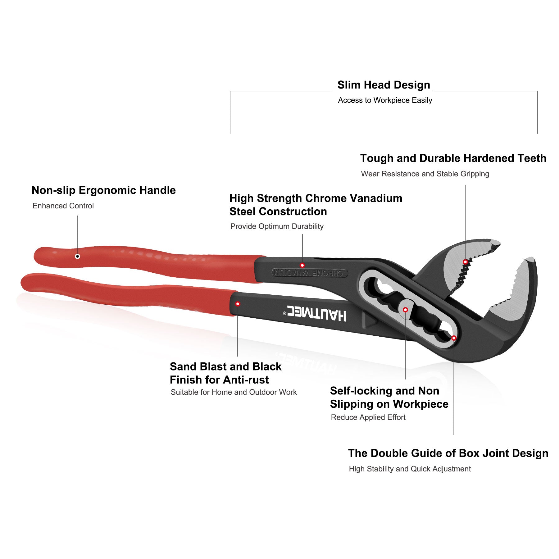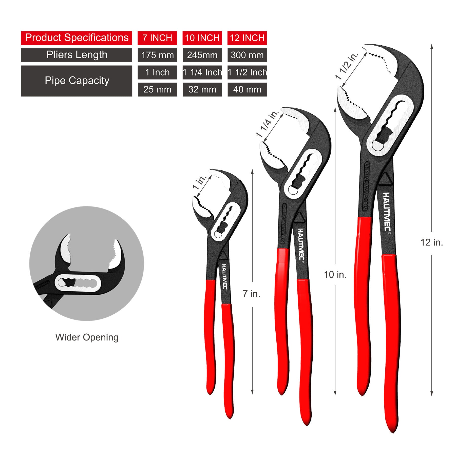 HAUTMEC Water Pump Pliers Set, Wider Opening,Groove Joint Pliers with Curved Jaw and Quick Adjustment Lock for Gripping,Repair,Nuts,Bolts, Pipe,12/10/7 Inch HT0323