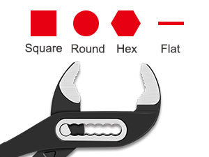The hardened jaws ensure long-term reliability, and the versatile jaws are specially designed to accommodate a variety of shapes, including round, flat, square, and hex