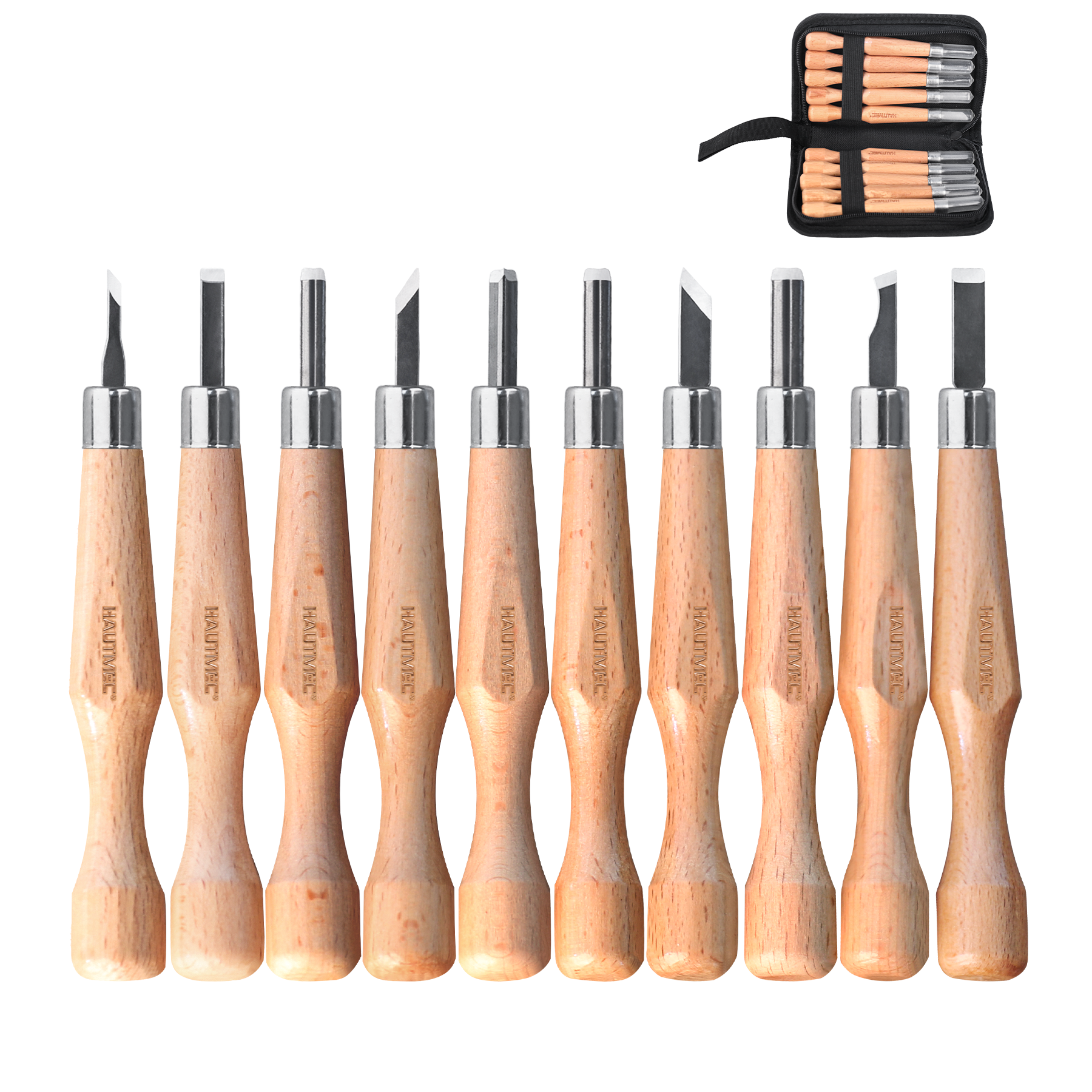 HAUTMEC Wood Carving Tool Set - 10 PCS Hand Carving Knives and Chisels for DIY Sculpture Carpenter Experts & Beginners, HT0391