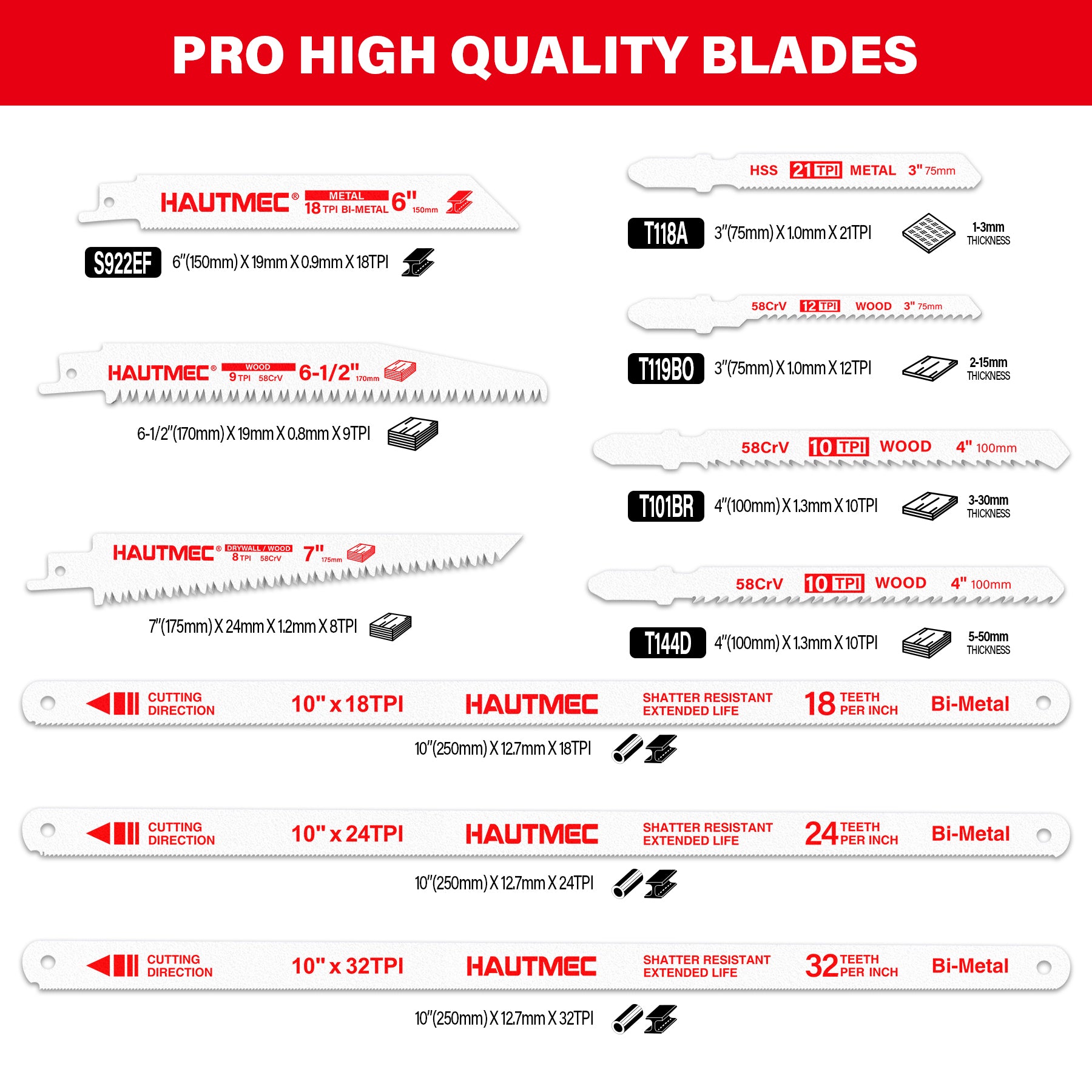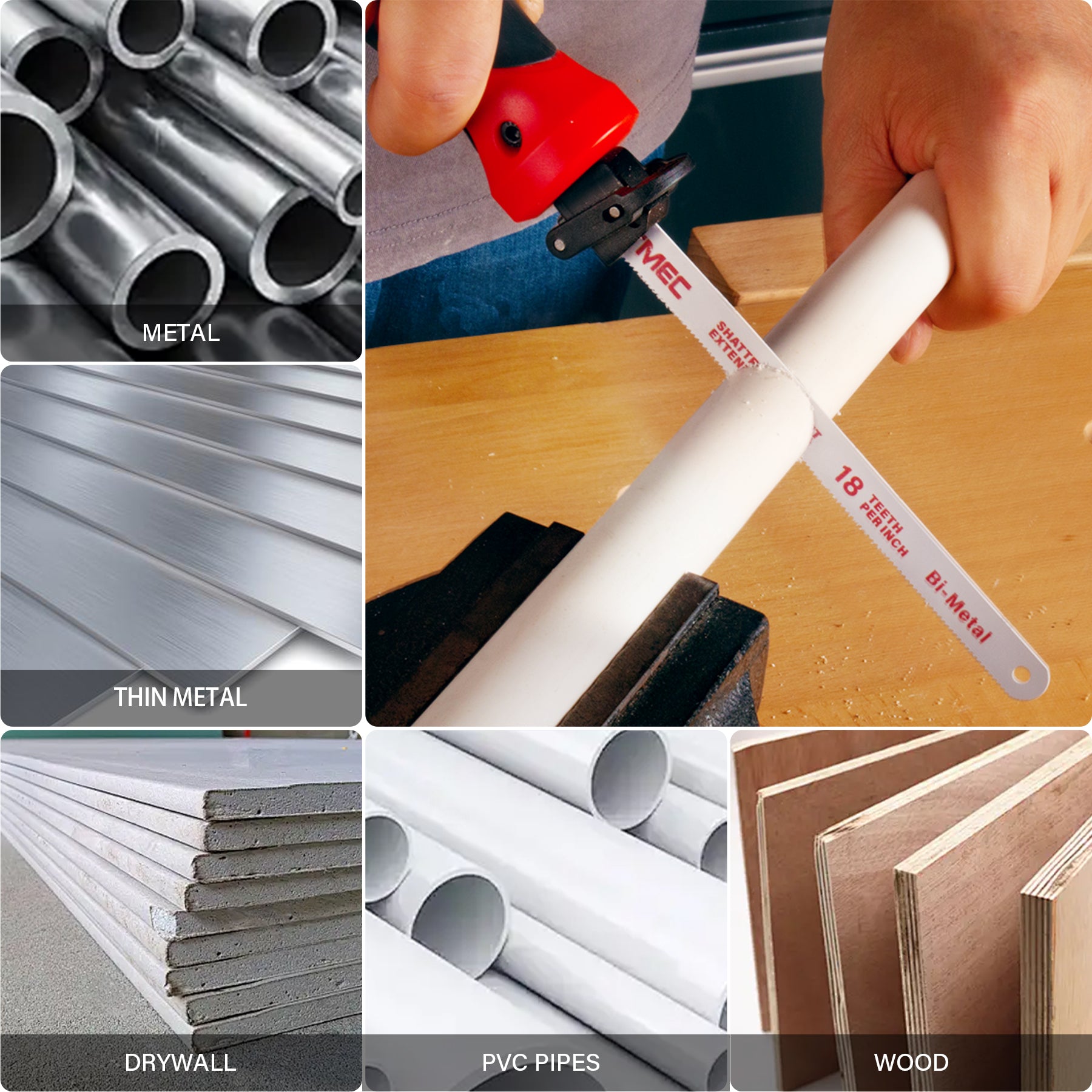 - 【Professional-Grade Blade Materials】These 10 different blades are crafted from 3 different heavy duty material: chrome vanadium steel, HSS and BI-metal. the blades stay sharp for long-lasting performance. The sturdy frame provides stability while cutting through various materials effortlessly