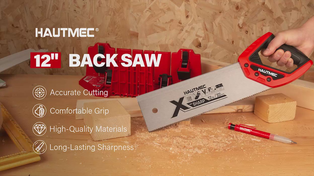 HAUTMEC 12-Inch Back Saw, 65Mn High-Manganese Steel Tenon Saw with Hardened Teeth, 11 TPI Double-Ground Blade, Reinforced Steel Spine & Ergonomic Handle for Precision Woodworking HTHDM25037