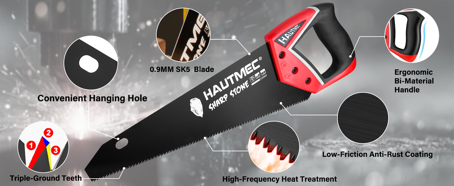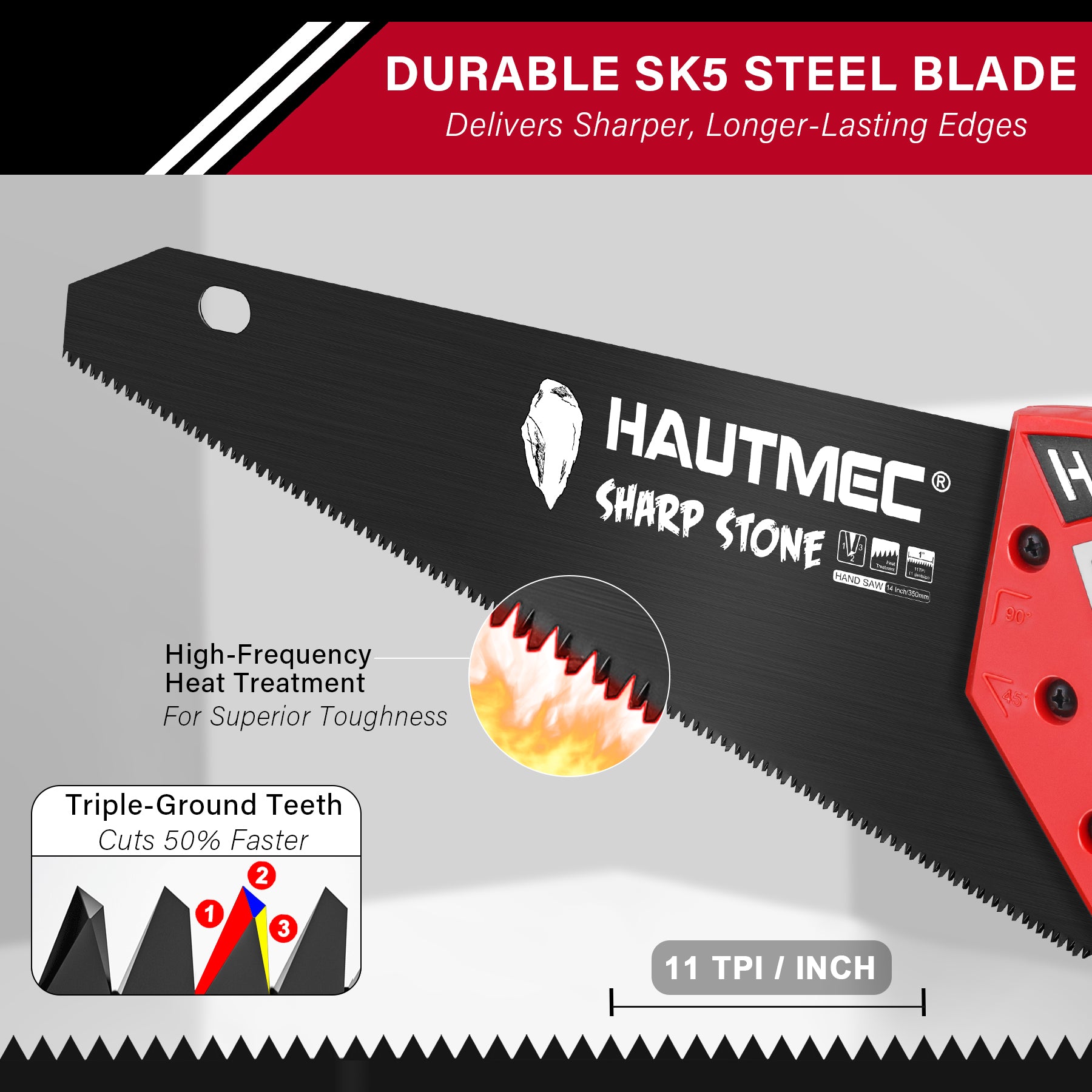HAUTMEC 14" Expert Hand Saw for Accurate, Clean & Labor-Saving Cutting, 11 TPI Fine-Cut Handsaw with SK5 Rust-Resistant Blade, Triple Ground Teeth, Ergonomic Non-Slip Handle for Wood, PVC – HT0301
