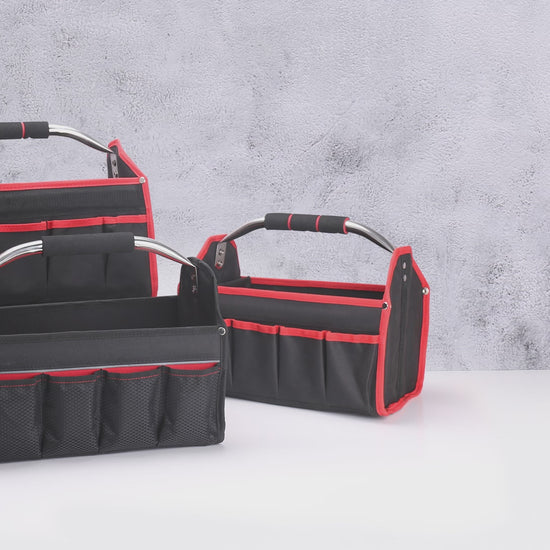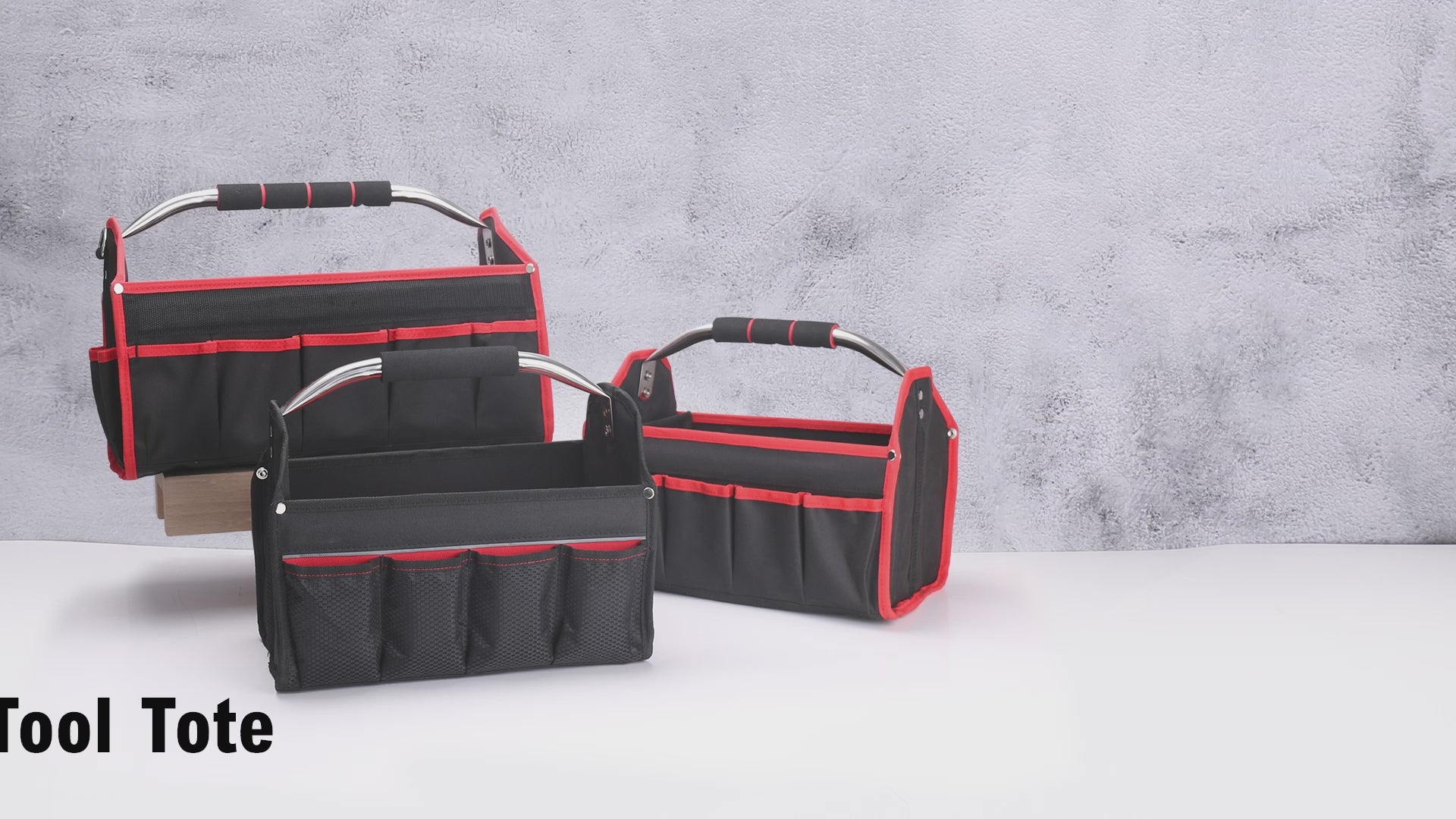 HAUTMEC 16-Inch Open Top Tool Tote Bag 16 Pockets, Foldable Design Tool Carrier With Adjustable Shoulder Strap, TB0002