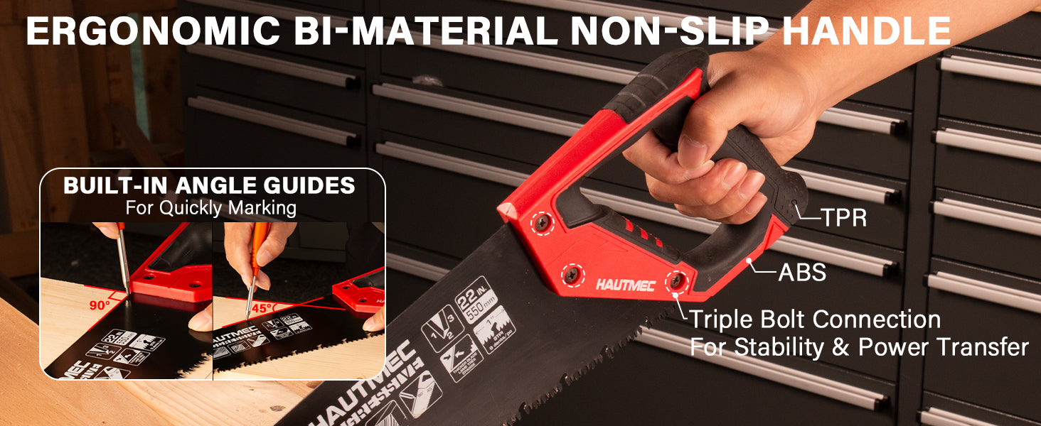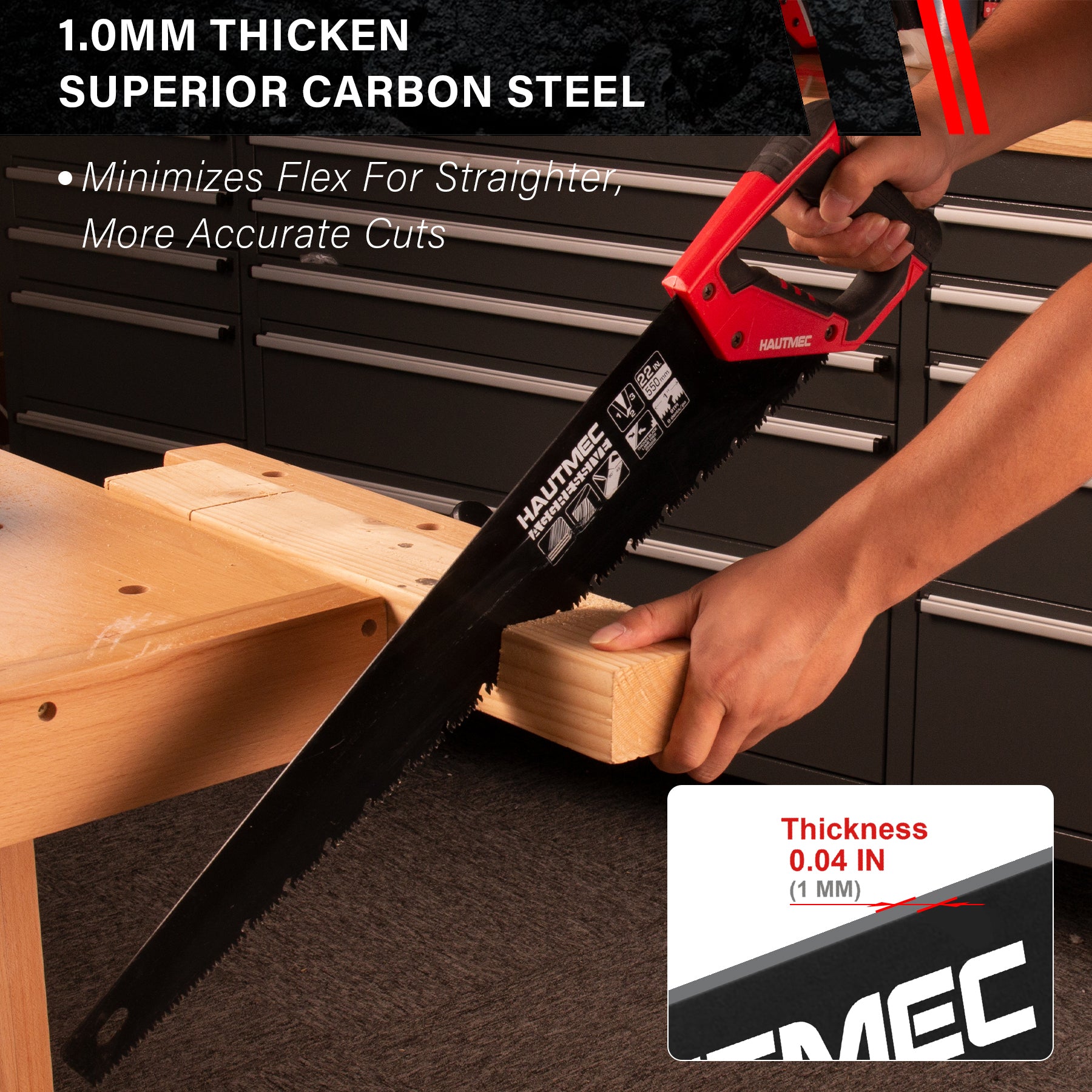 HAUTMEC 22-Inch Aggressive Hand Saw, Ergonomical Handle, Rust-proof Wood Saw With Chip Removal Design, for Heavy Duty Sawing, Trimming, Gardening of Wood, Drywall, Laminate And Plastic HT0026-SA