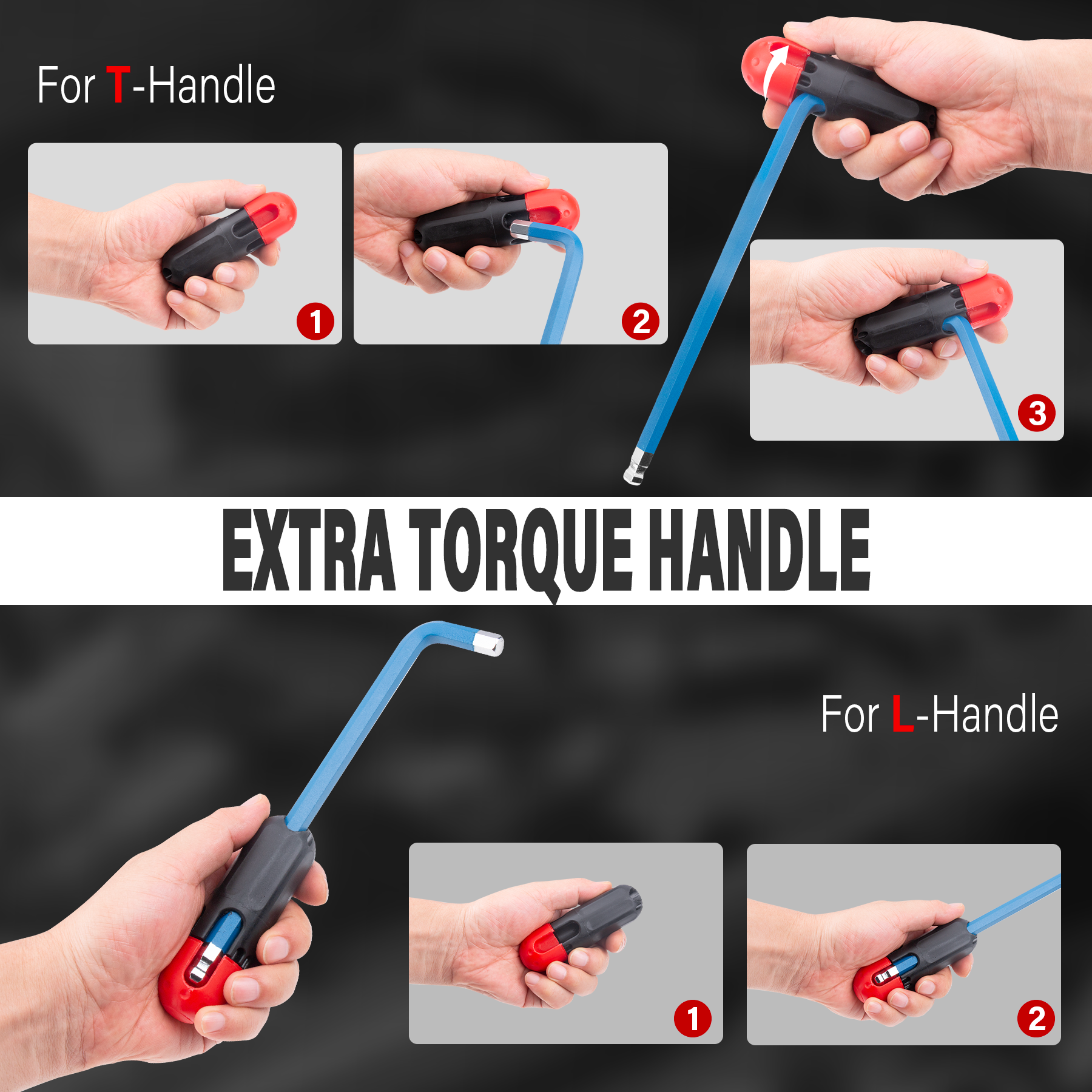 ● [30% More Power with Long Arm & T-Handle]: The T handle allen wrench set is designed to deliver superior leverage through its extra-long arm design. This leverage is enhanced by the ergonomic PP T-handle for increased comfort. Working together with the long arm allen key set, it provides up to 30% more effective power for demanding tasks and helps minimize hand fatigue.