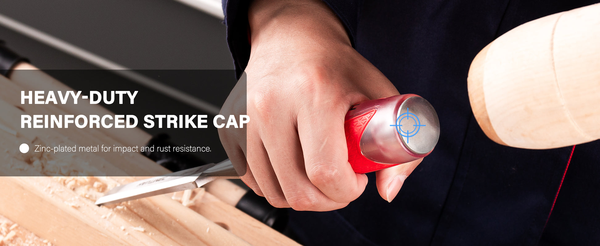 - Heavy-Duty Strike Cap: The zinc-plated steel cap withstands repeated blows from mallets or hammers without damaging the handle, built for chopping, heavy strikes, and mortice cutting with lasting strength in tough carpentry.