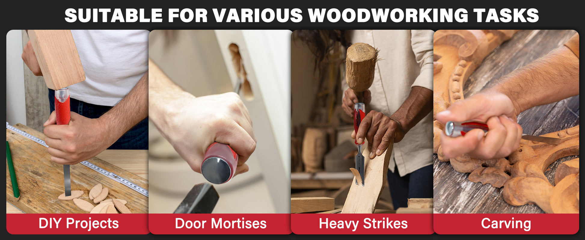 Multiple Sizes & Sets: Available in single chisels or complete sets, covering needs from household repairs to construction and jobsite carpentry. A practical first choice for beginners, yet equally trusted by professionals.