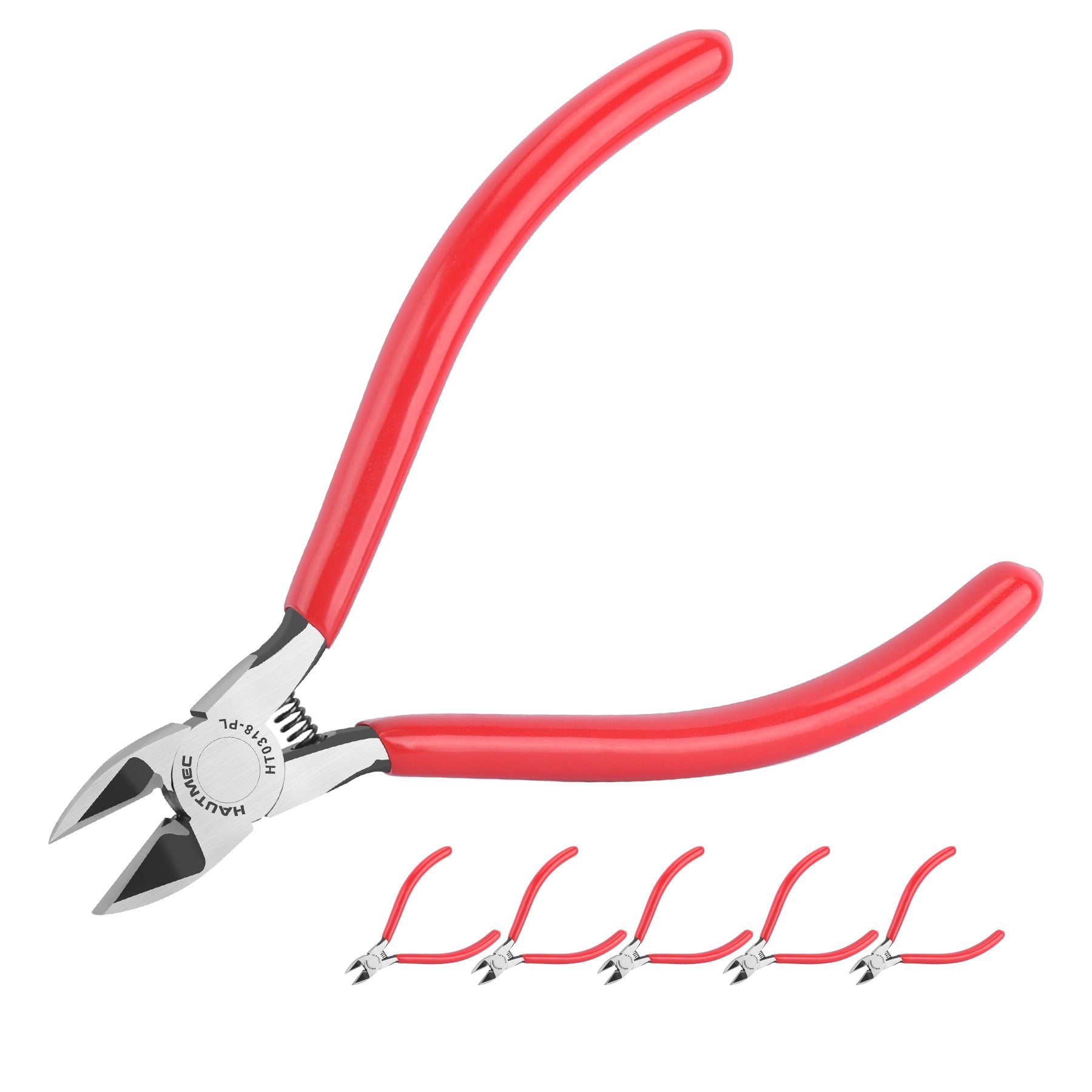 HAUTMEC 6" Flush Cut Pliers Ultra Sharp Wire Cutters 5PCS with Spring Loaded and Non-slip Grip, Ideal Wire Snips for Plastic, Soft Wire, Toy Model Kits, Jewelry Marking, Zip Ties, HT0318-5PC